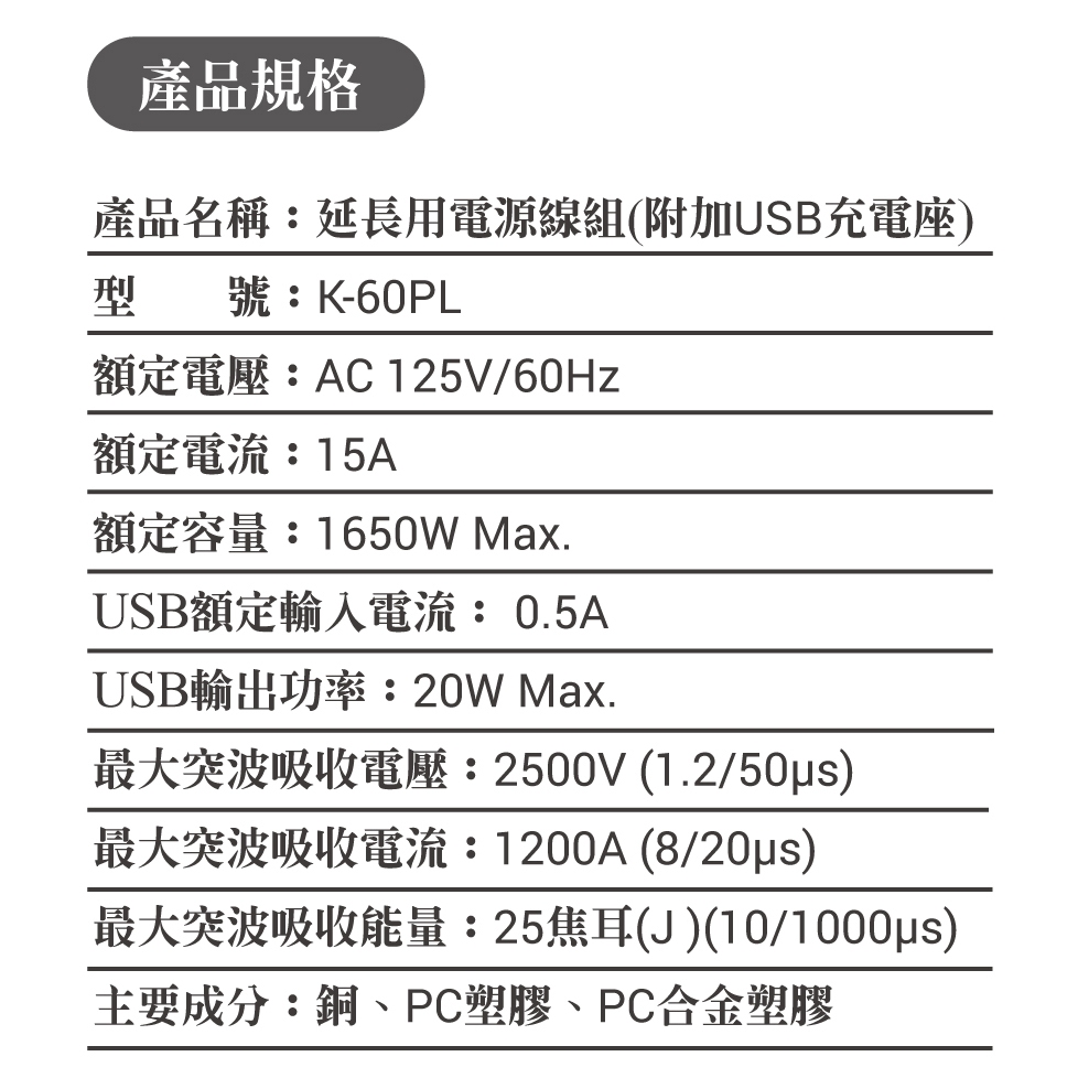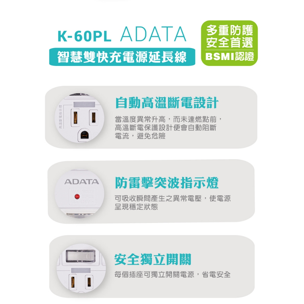 【威剛ADATA】1.8米5開4插3孔超級智能快充雙USB+PD+QC延長線組 K-60PL 防雷擊插座 延長線插座【威剛ADATA】1.8米5開4插3孔超級智能快充雙USB+PD+QC延長線組 K-60PL 防雷擊插座 延長線插座Electric Sockets & Extension Cords【E-MAN】電氣男數位購物商城