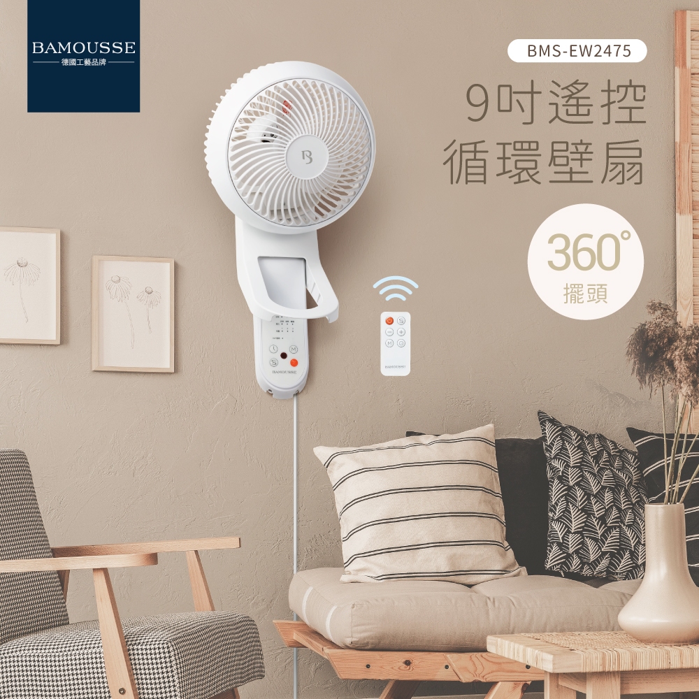 超熱銷【德國巴慕斯Bamousse】360度3D自動擺頭9吋遙控壁掛扇 BMS-EW2475 廁所餐廳壁扇循環扇牆扇掛扇超熱銷【德國巴慕斯Bamousse】360度3D自動擺頭9吋遙控壁掛扇 BMS-EW2475 廁所餐廳壁扇循環扇牆扇掛扇Cooling【E-MAN】電氣男數位購物商城