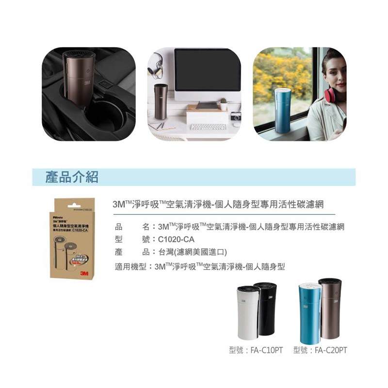 3M 個人隨身型空氣清淨機專用活性碳濾網(C1020-CA)