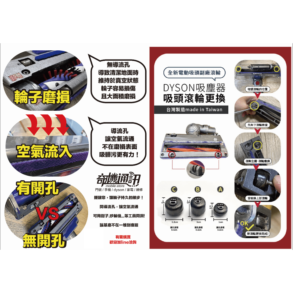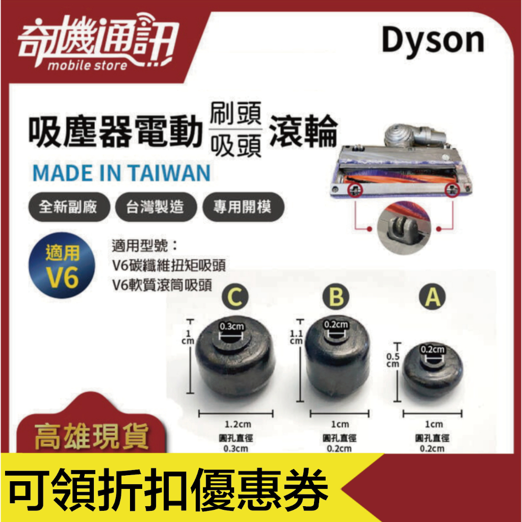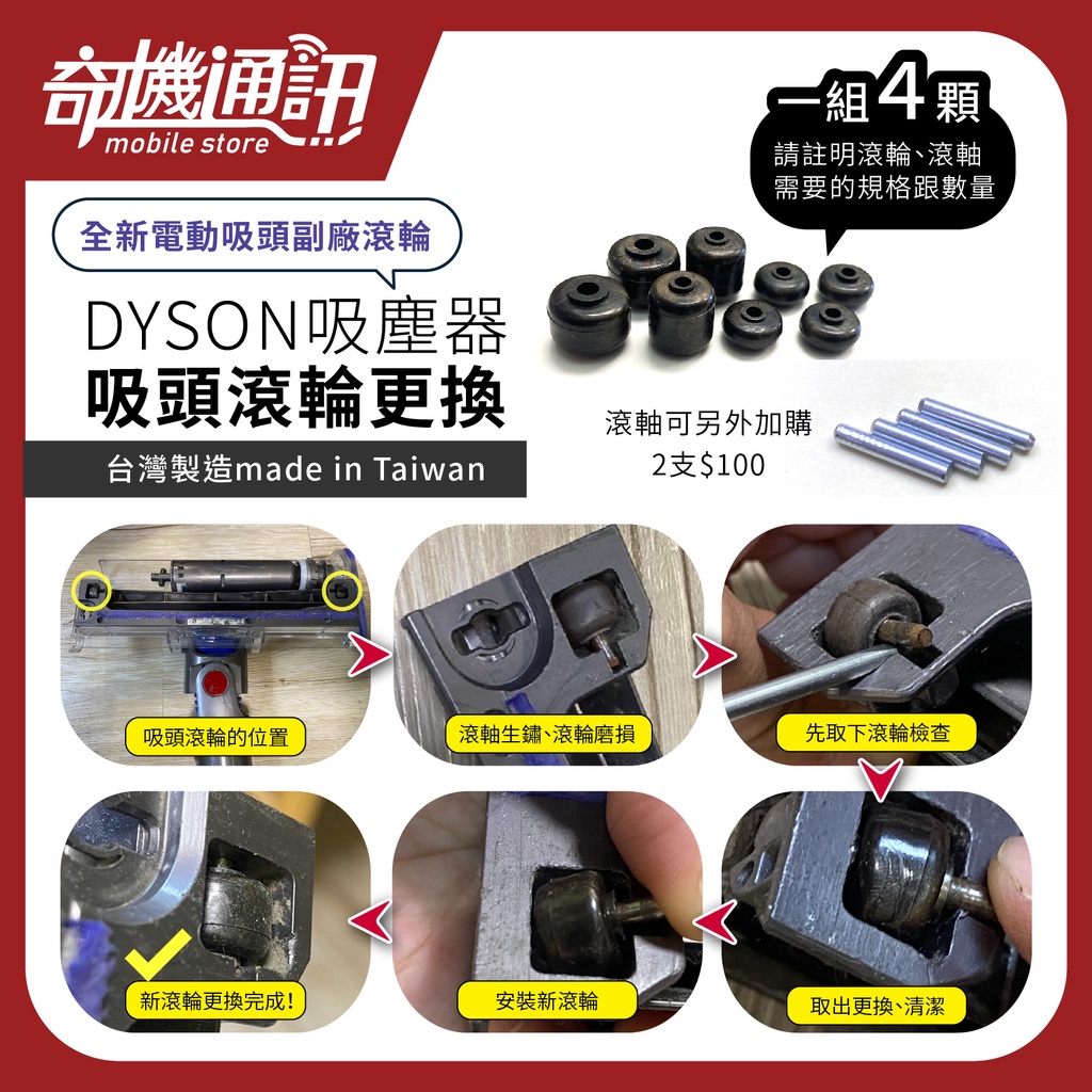 7G3C高雄【Dyson全新副廠滾輪】吸頭 刷頭 專用輪子 V11 V10 V8 V7 V6 座機 DC74 DC63A款式 4顆$189|B款式 4顆$189|C款式 4顆$189|A款式用滾軸2支$100|B款式用滾軸2支$100|C款式用滾軸2支$100|A款式 1顆$49|B款式 1顆$49|C款式 1顆$49Vacuum Cleaners & Floor Care Appliances7G3C 手機、門號、配件、3C、小家電 高雄