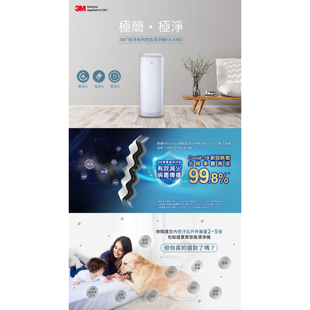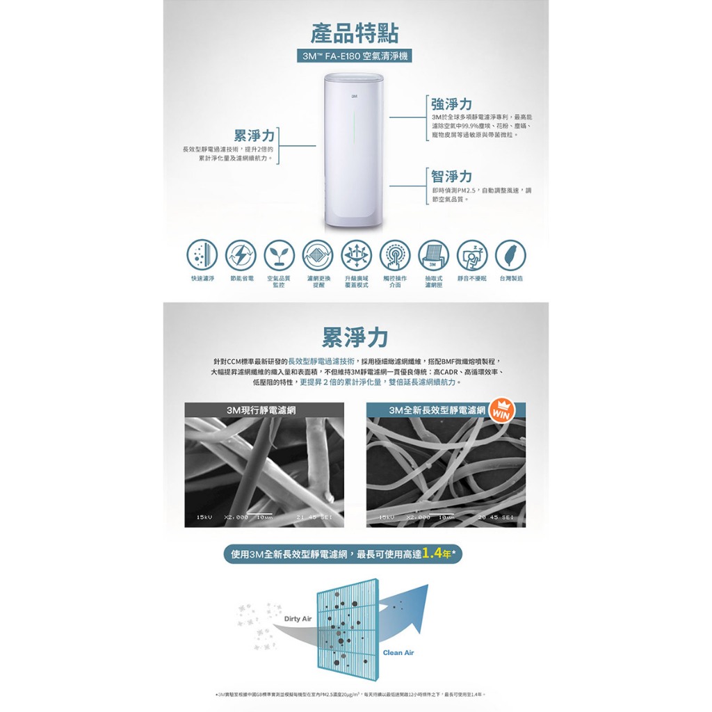 3M 淨呼吸 倍淨型空氣清淨機 適用6-14坪 FA-E180(N95口罩濾淨原理)3M 淨呼吸 倍淨型空氣清淨機 適用6-14坪 FA-E180(N95口罩濾淨原理)Air Treatment3M 授權官方旗艦館