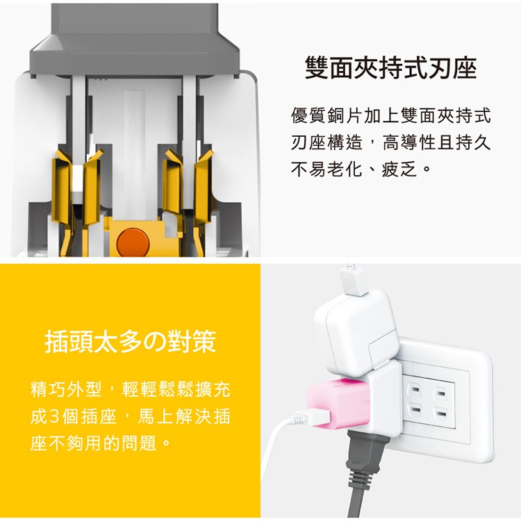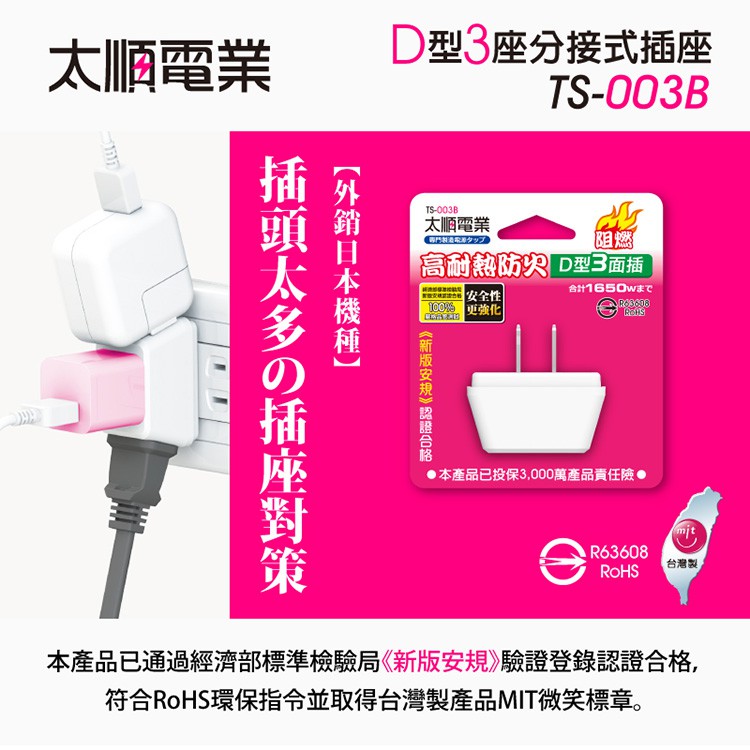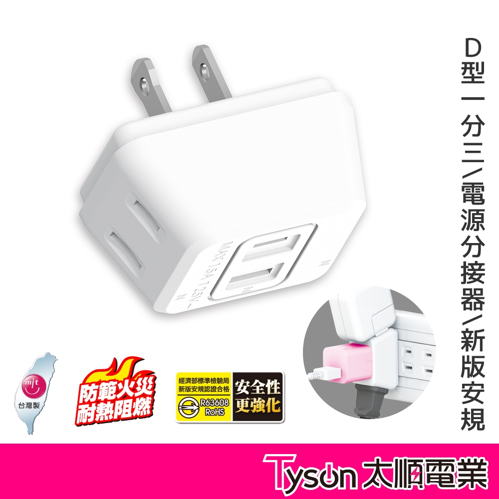 Tyson太順電業 台灣製 D型3座 2孔分接式插座 【現貨】 003BB 插座 安全防火 高耐熱 阻燃 耐用 耐摔1入Electric Sockets & Extension Cordsaibo 3C生活館