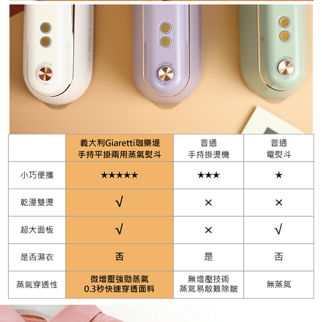 【義大利Giaretti】手持平掛兩用蒸氣熨斗/掛燙機 GT-FS690 (三色可選) [A級福利品‧數量有限]綠色|白色|紫色Irons & SteamersAll Sale電器共和國