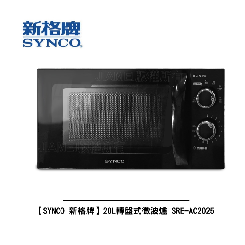 【SYNCO新格牌】 20L轉盤式微波爐 SRE-AC2025 微波爐【SYNCO新格牌】 20L轉盤式微波爐 SRE-AC2025 微波爐MicrowavesAll Sale電器共和國