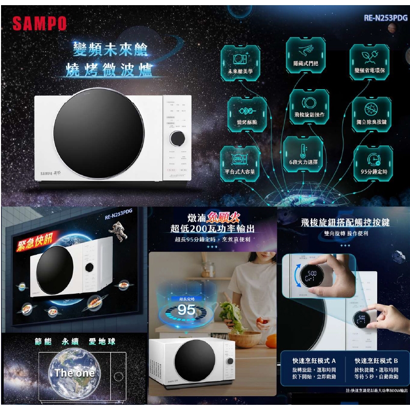 [A級福利品‧數量有限]【SAMPO聲寶】天廚25L微電腦變頻燒烤微波爐 RE-N253PDG[A級福利品‧數量有限]【SAMPO聲寶】天廚25L微電腦變頻燒烤微波爐 RE-N253PDGMicrowavesAll Sale電器共和國