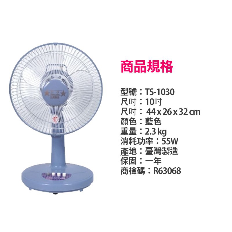 雙星 10吋桌扇 電風扇 涼風扇 桌扇 TS-1030(兩色可選)粉色|藍色CoolingAll Sale電器共和國