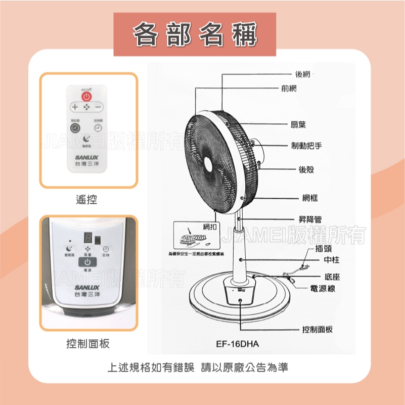 【SANLUX台灣三洋】 16吋 DC節能電風扇/立扇 EF-16DHA【SANLUX台灣三洋】 16吋 DC節能電風扇/立扇 EF-16DHACoolingAll Sale電器共和國