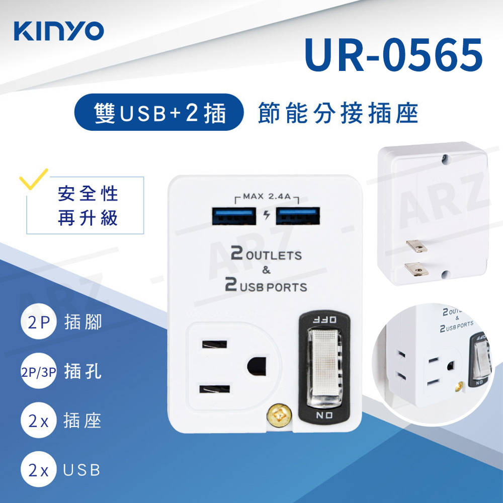 KINYO USB+節能分接插座【ARZ】【C117】2孔 3孔 開關插頭 節電插座 插座轉接頭 分接式插座 壁插 插座UR0565/白色Electric Sockets & Extension CordsARZ行動商城