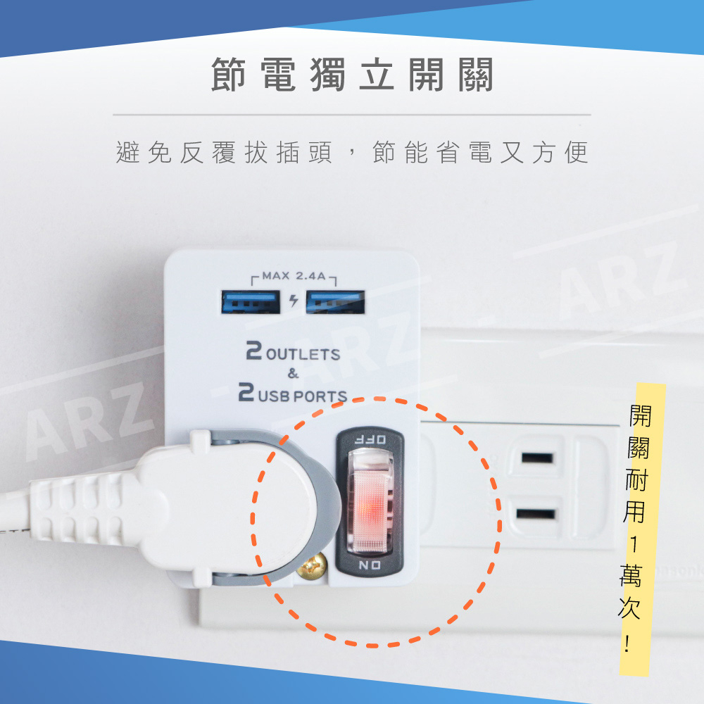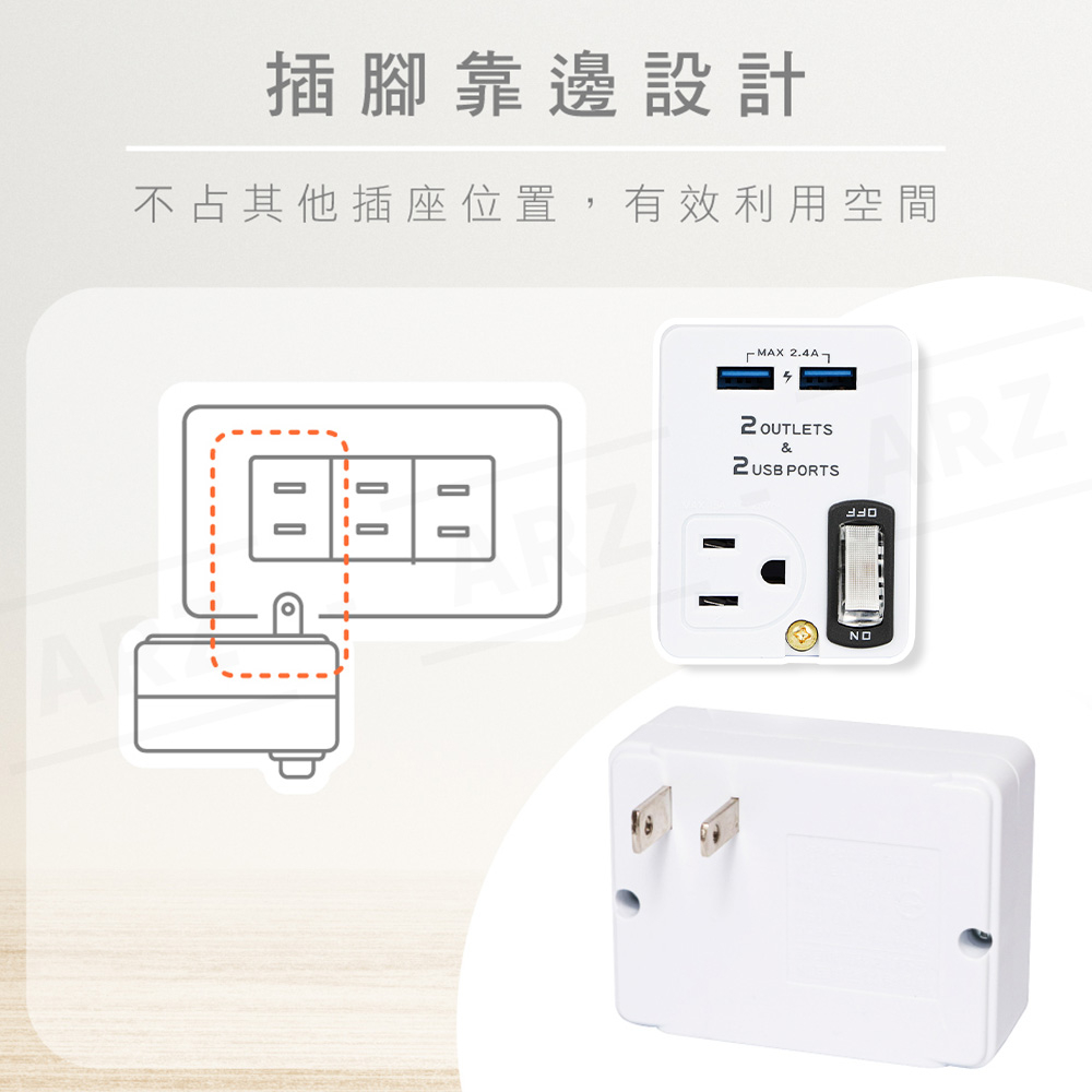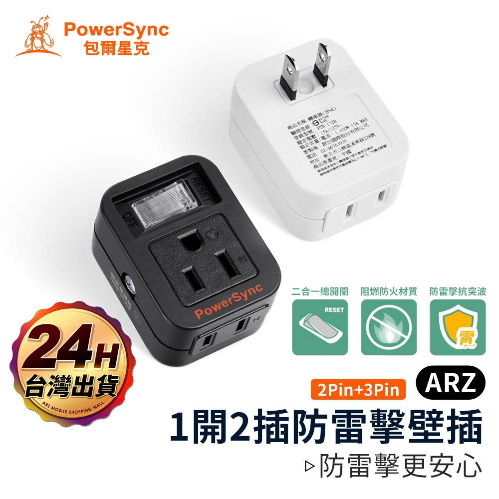 PowerSync 壁插分接器 1開2插【ARZ】【G007】防雷擊 插頭 擴充插座 3轉2 開關插座 轉接頭 分接插座白色|黑色Electric Sockets & Extension CordsARZ行動商城