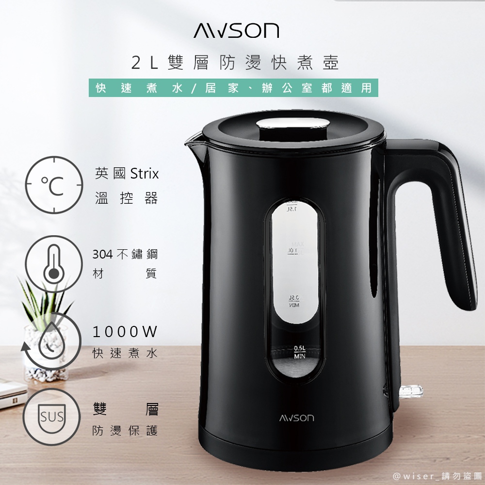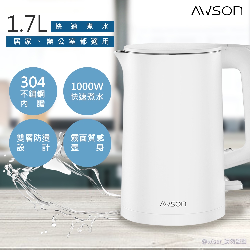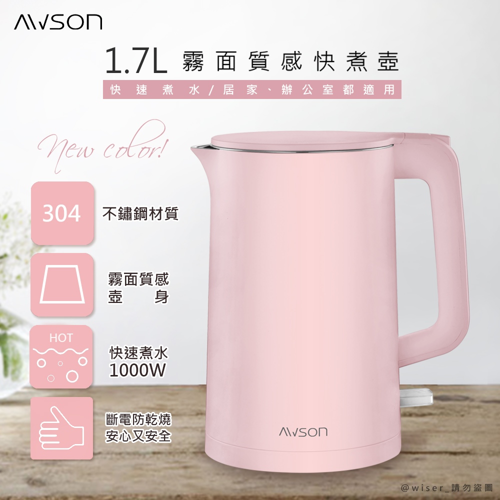 日本【AWSON】1.7L 快煮壺 不鏽鋼快煮壺 電熱壺 雙層304不鏽鋼快煮壺 電茶壺 煮水壺 不鏽鋼壺 熱水壺紳士黑|珍珠白|可可灰|1.8L不鏽鋼款|櫻花粉|2L雙層防燙玻璃(英國STRIX溫控器)KettlesAWSON 日本歐森 生活家電旗艦館
