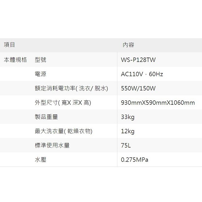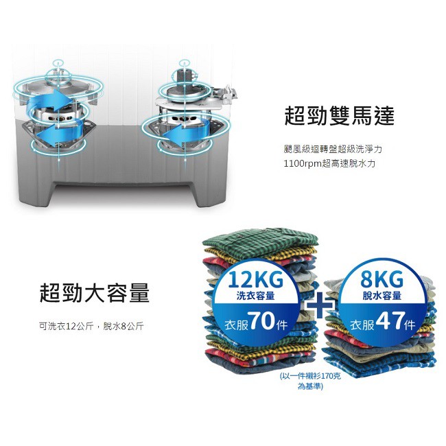 十倍蝦幣送 公司貨含基本安裝【CHIMEI奇美】12公斤雙槽洗衣機WS-P128TW 洗12Kg 脫8kg十倍蝦幣送 公司貨含基本安裝【CHIMEI奇美】12公斤雙槽洗衣機WS-P128TW 洗12Kg 脫8kgWashing Machines & Dryers【E-MAN】電氣男數位購物商城