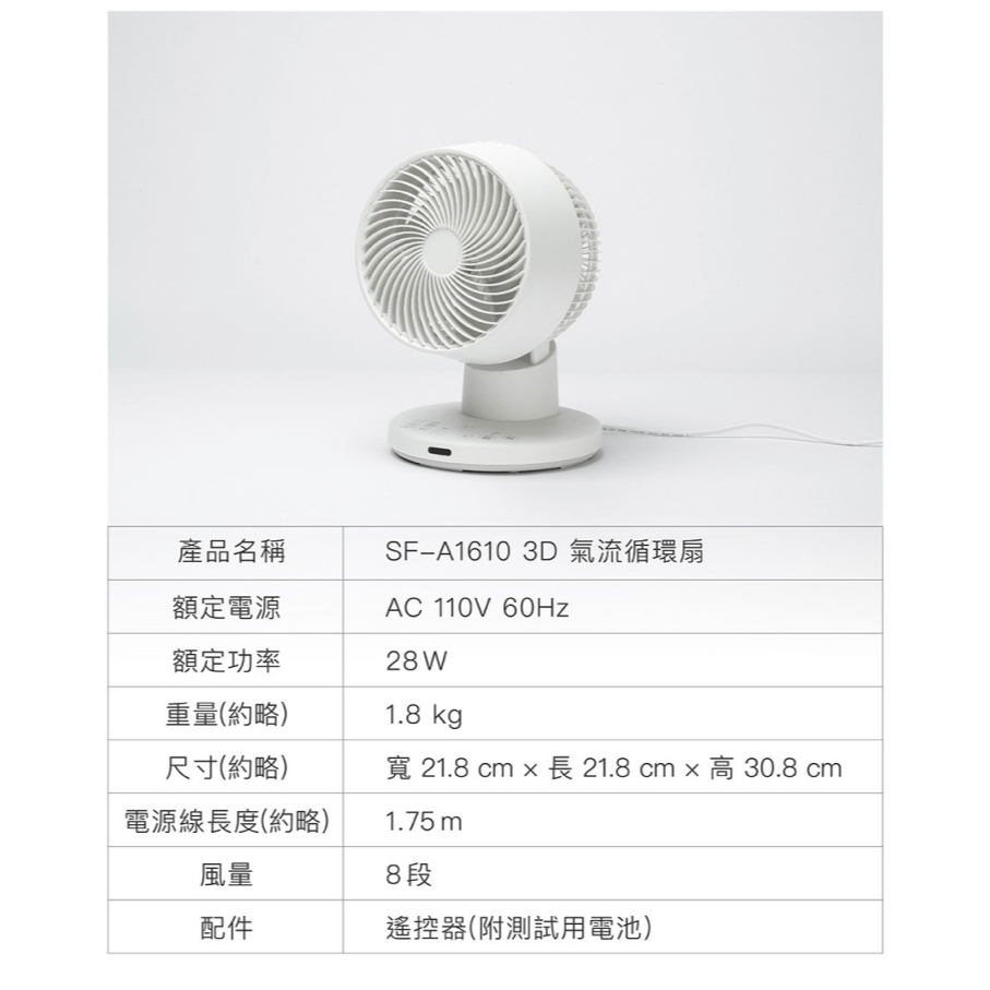 SIROCA siroca SF-A1610 3D氣流循環扇 DC扇 安靜小巧 循環扇 宿舍 電扇 原廠公司貨SIROCA siroca SF-A1610 3D氣流循環扇 DC扇 安靜小巧 循環扇 宿舍 電扇 原廠公司貨Cooling 采躍科技