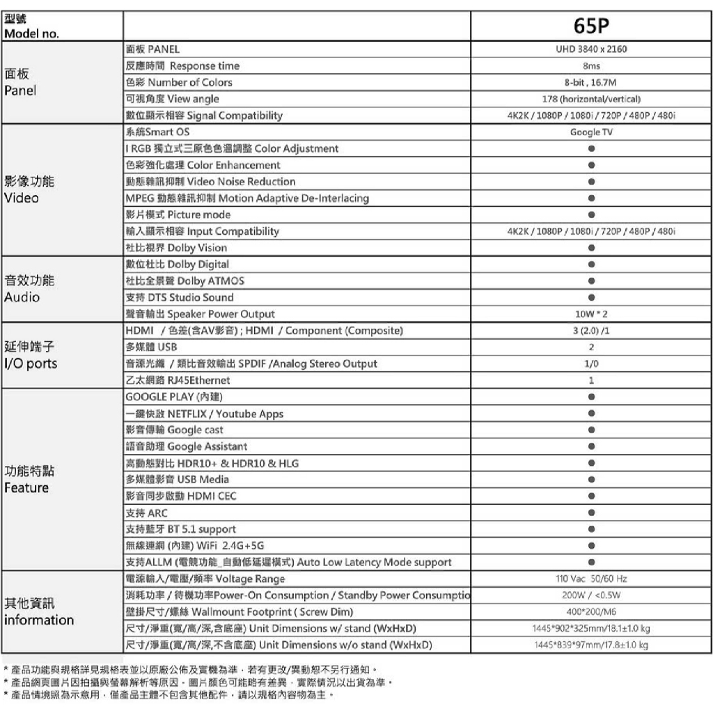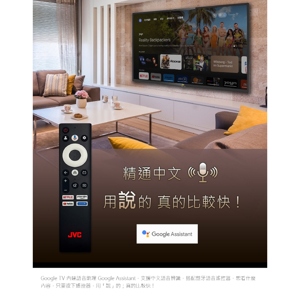 公司貨 三年保【JVC傑偉世】65吋 4K Google TV 杜比雙認證 安卓聯網語音聲控連網液晶電視 65P全省配送+送基本安裝 /無電梯樓層偏遠另TVs【E-MAN】電氣男數位購物商城