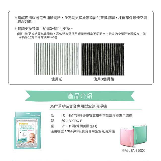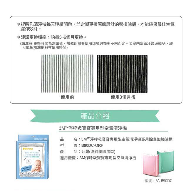 3M 淨呼吸 寶寶專用型 空氣清淨機專用濾網 /除臭加強濾網 B90DC-ORF (適用寶寶機FA-B90DC)專用濾網 B90DC-F|專用除臭加強濾網 B90DC-ORFAir Treatment3M 授權官方旗艦館
