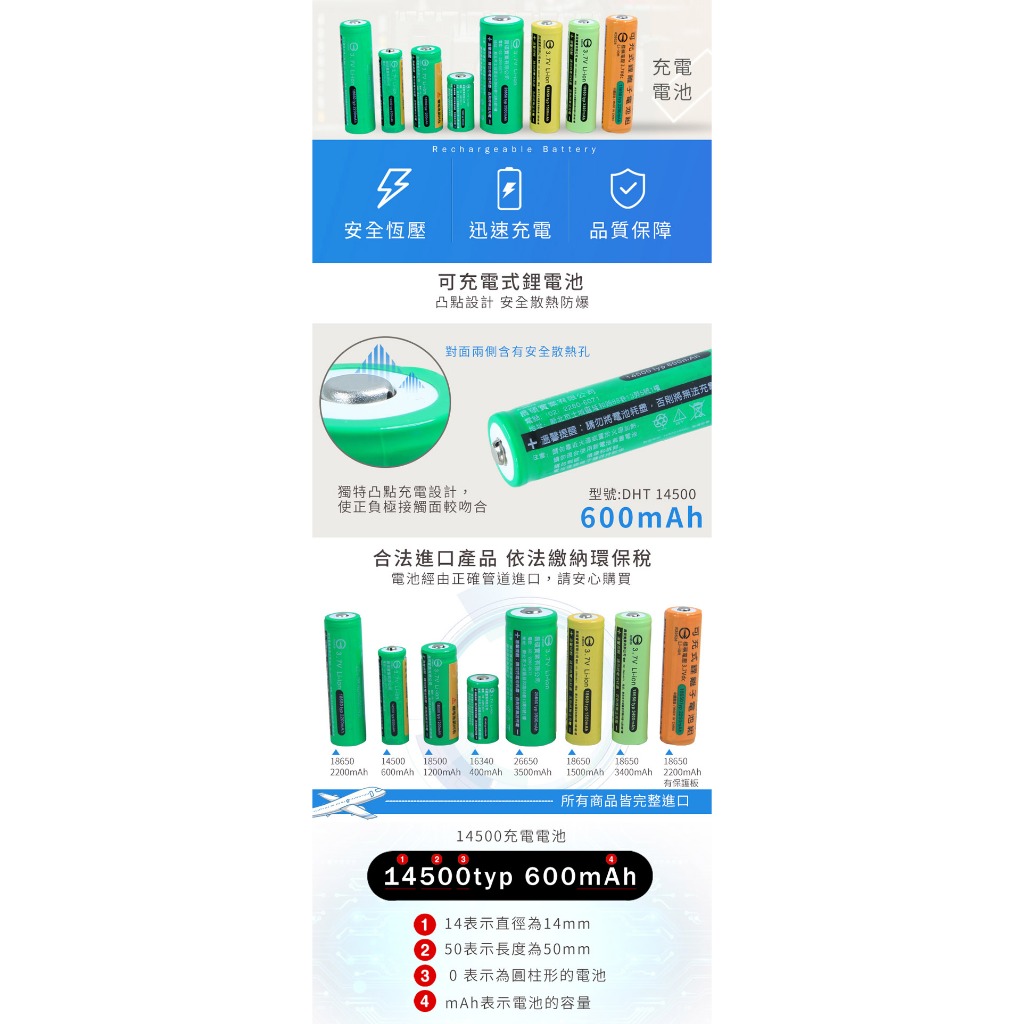 CS 14500 凸點 充電 電池(單顆入) 600mAh/顆 循環使用 環保又方便 凸頭接觸面 正負極分辨