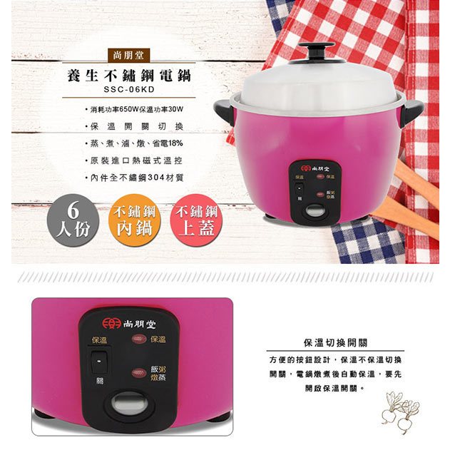 尚朋堂6人份不鏽鋼電鍋 SSC-06KD尚朋堂6人份不鏽鋼電鍋 SSC-06KDRice CookersAll Sale電器共和國