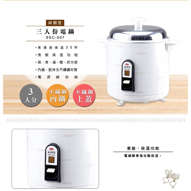 尚朋堂 3人份單身貴族電鍋 SSC-007 ◤內鍋、蒸盤、鍋蓋不鏽鋼◢電鍋-SSC-007|電鍋SSC-007+購內鍋*1|單購SSC-007的內鍋(只有內鍋配件)Rice CookersAll Sale電器共和國