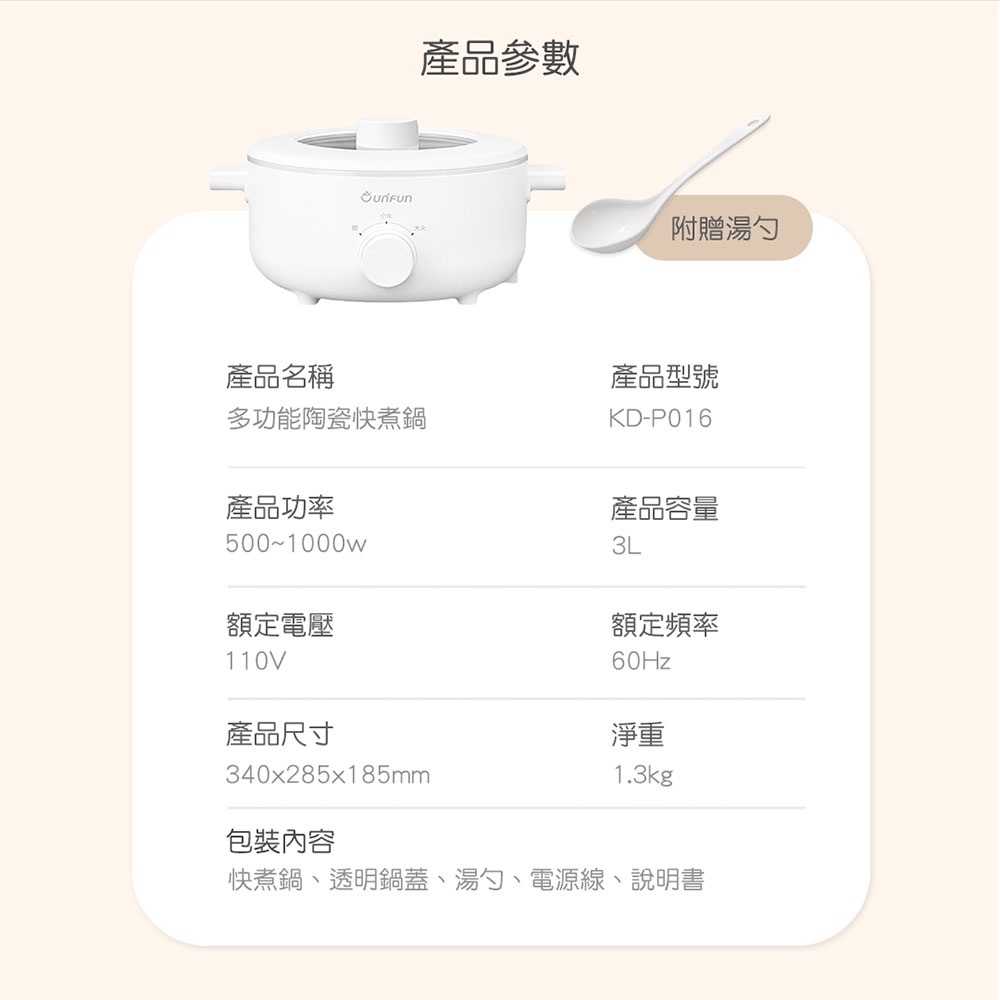 UNIFUN 多功能陶瓷快煮鍋3L 附大湯勺【台灣現貨保固一年】不沾鍋 烹飪鍋 電火鍋 料理鍋 電煮鍋 快煮鍋 美食鍋UNIFUN陶瓷快煮鍋3LMulti-function CookersAP 3C旗艦館