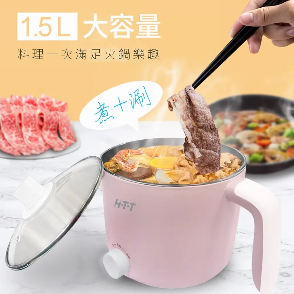 公司貨現貨【HTT】1.5公升304不鏽鋼美食鍋 HCP-1216A 雙色 電煮鍋電碗小火鍋快煮鍋小電鍋電熱鍋蒸煮鍋白色|粉色Multi-function Cookers【E-MAN】電氣男數位購物商城