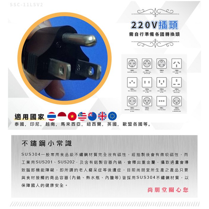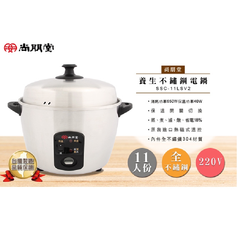 【尚朋堂】11人份220V養生不鏽鋼電鍋 SSC-11LSV2【尚朋堂】11人份220V養生不鏽鋼電鍋 SSC-11LSV2Rice CookersAll Sale電器共和國