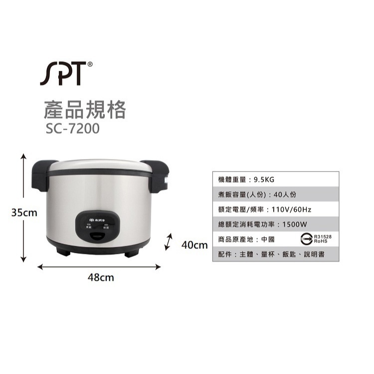 尚朋堂40人份營業用煮飯鍋 SC-7200 公司貨尚朋堂40人份營業用煮飯鍋 SC-7200 公司貨Rice CookersAll Sale電器共和國