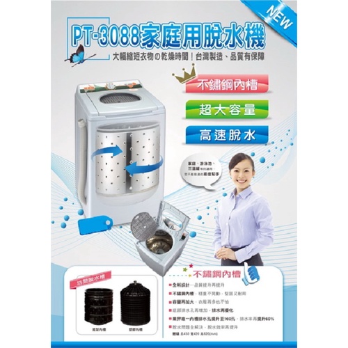 寶島牌 10公斤不鏽鋼內槽脫水機 PT-3088 台灣製造寶島牌 10公斤不鏽鋼內槽脫水機 PT-3088 台灣製造Washing Machines & DryersAll Sale電器共和國
