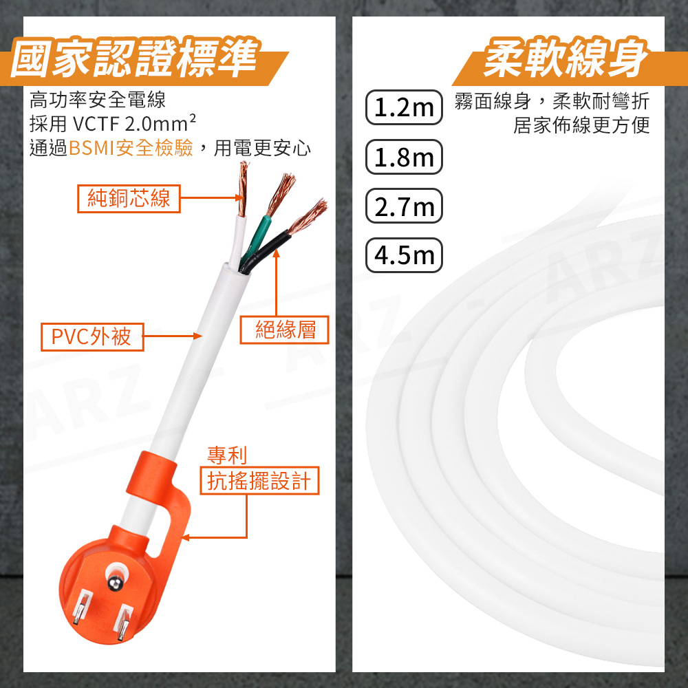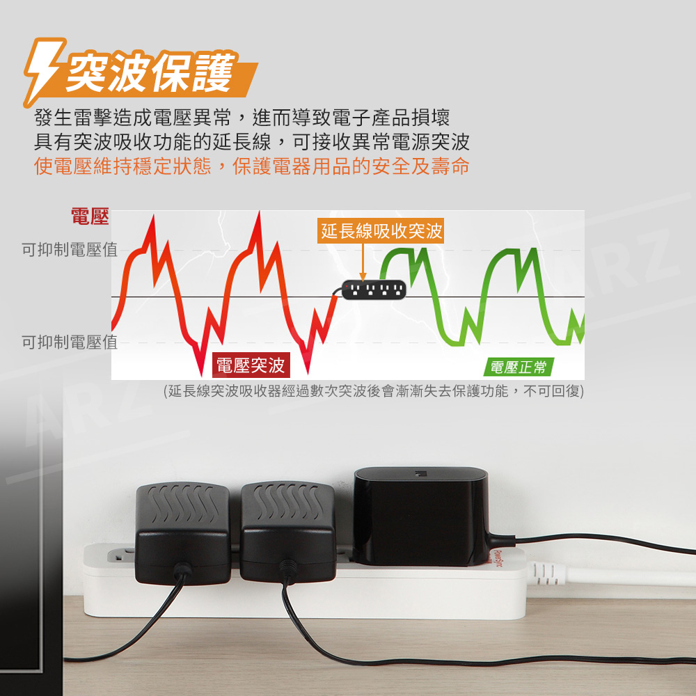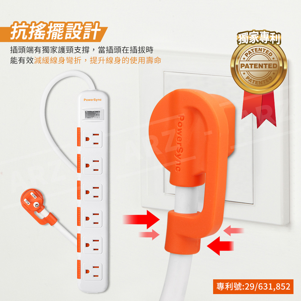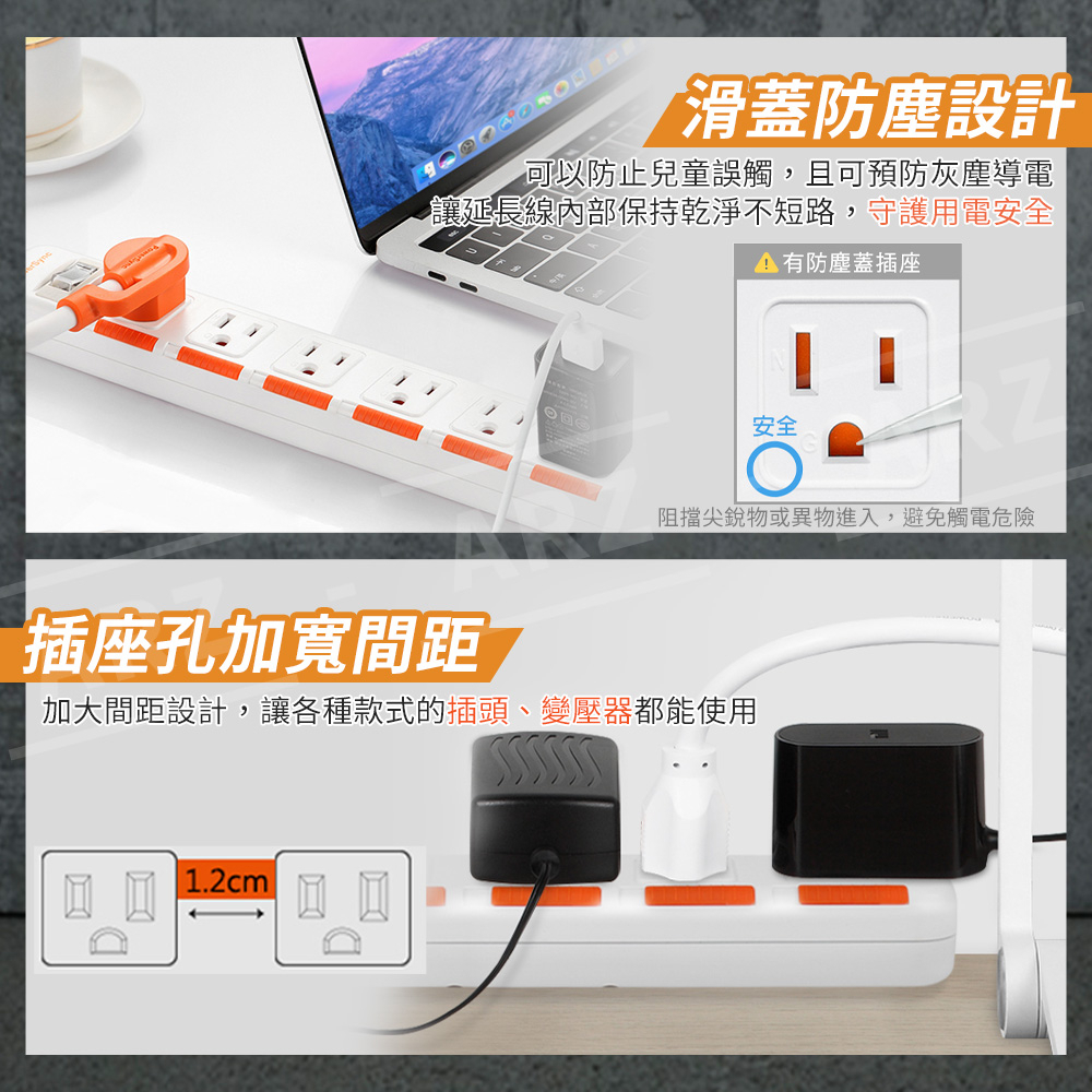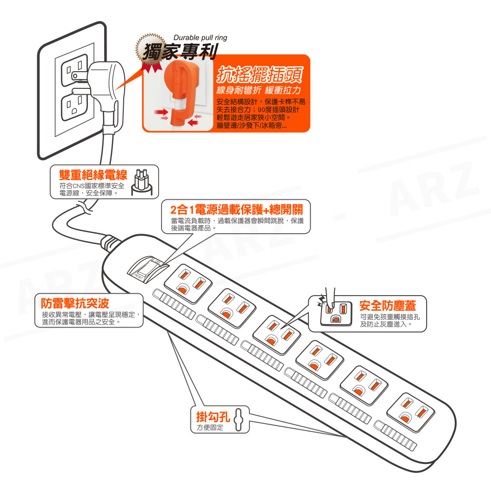 PowerSync 防塵蓋延長線 一開六插【ARZ】【E102】新安規專利插頭 防雷擊延長線 三孔插座 安全 群加延長線1.2M|1.8M|2.7M|4.5MElectric Sockets & Extension CordsARZ行動商城
