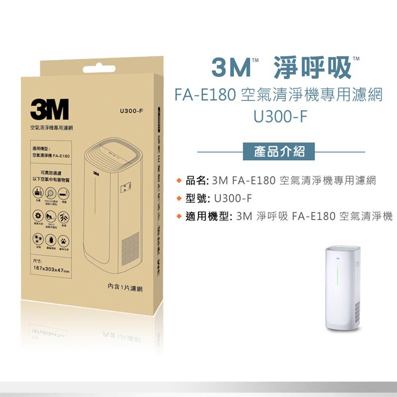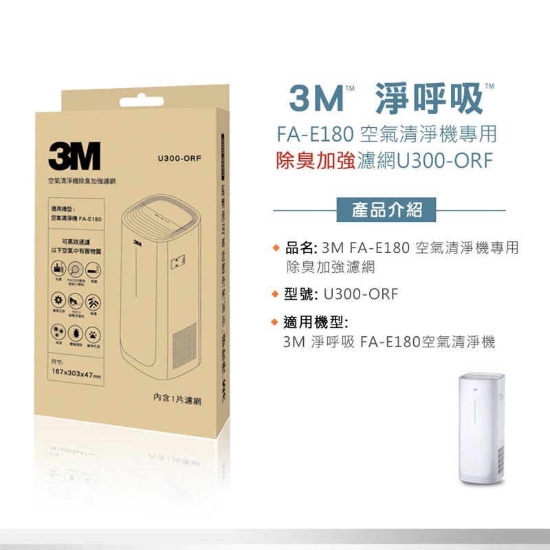 3M 淨呼吸 倍淨型空氣清淨機專用濾網 /除臭加強濾網 U300-F (適用機型FA-E180)專用濾網U300-F|專用除臭加強濾網 U300-ORFAir Treatment3M 授權官方旗艦館