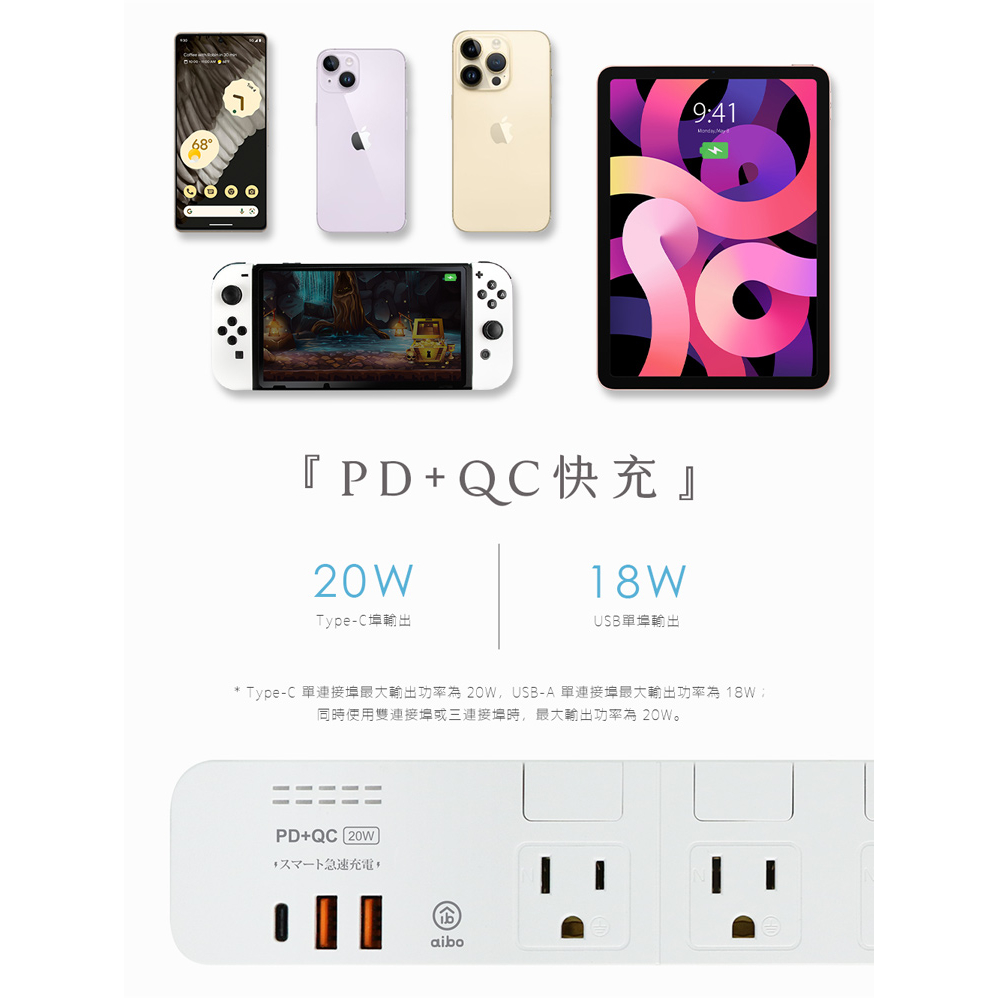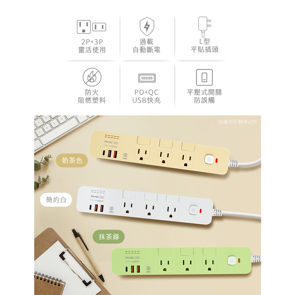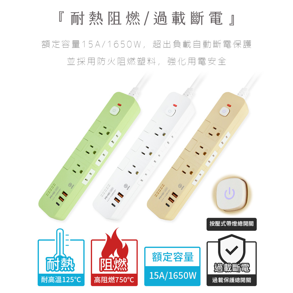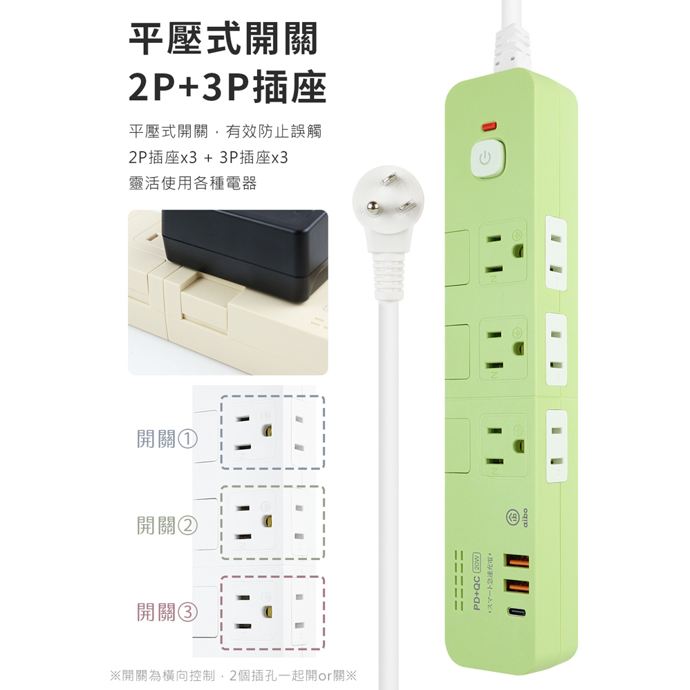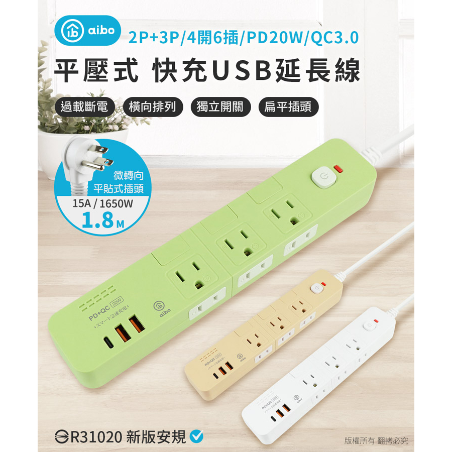 aibo 4切6座 平壓式 PD+QC雙快充 USB延長線 1.8米【現貨】 延長線 PD快充 PD延長線 安全延長線簡約白|奶茶色|抹茶綠Electric Sockets & Extension Cordsaibo 3C生活館
