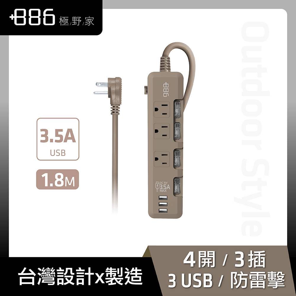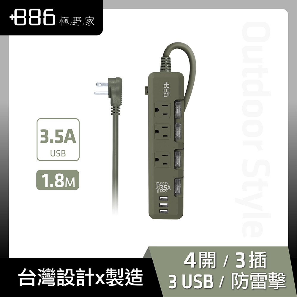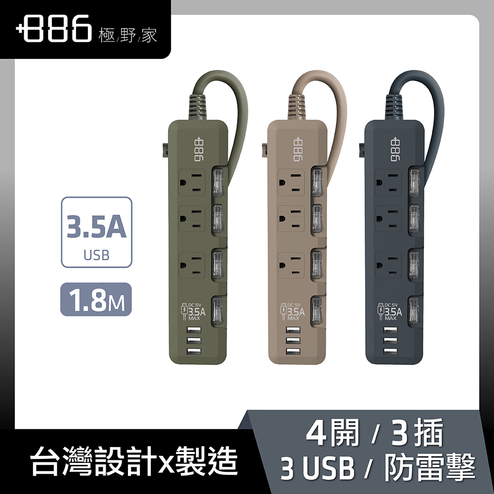 【+886】極野家 4開3插 3USB 過載保護延長線 1.8米 3色任選(HPS1431)軍綠AG-3入組|奶茶棕KK-3入組|迷霧灰SB-2入組|迷霧灰SB-3入組|軍綠AG|軍綠AG-2入組|奶茶棕KK|奶茶棕KK-2入組|迷霧灰SBElectric Sockets & Extension Cords+886 [極野家]