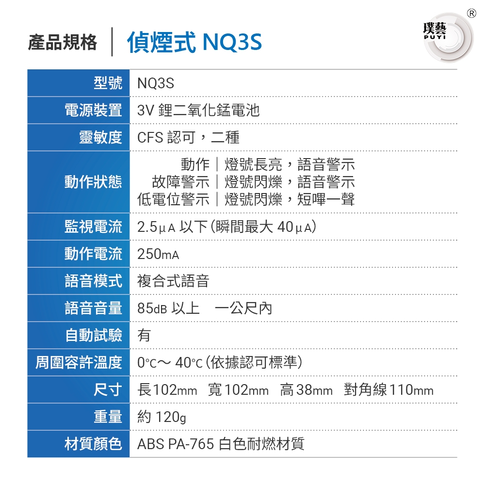 【宏力】語音住宅用火災警報器 偵煙式NQ3S(消防署認證/住警器/偵煙器/語音警報/附3M雙面泡棉膠)