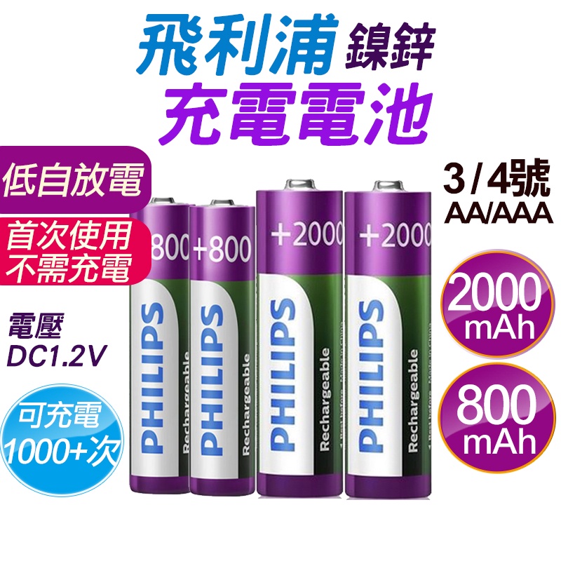 【飛利浦】鎳氫充電電池 充電電池 鎳氫電池 低自放電 電池 3號電池 4號電池 三號電池 四號電