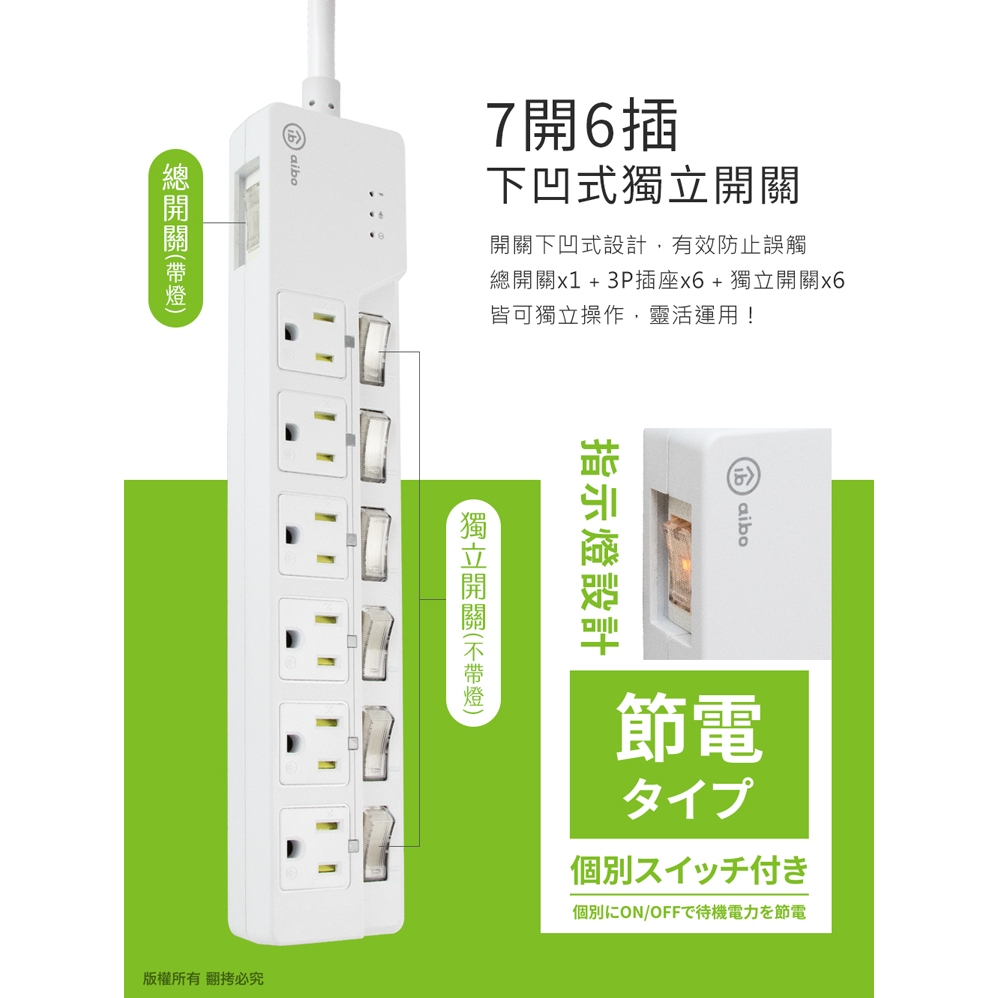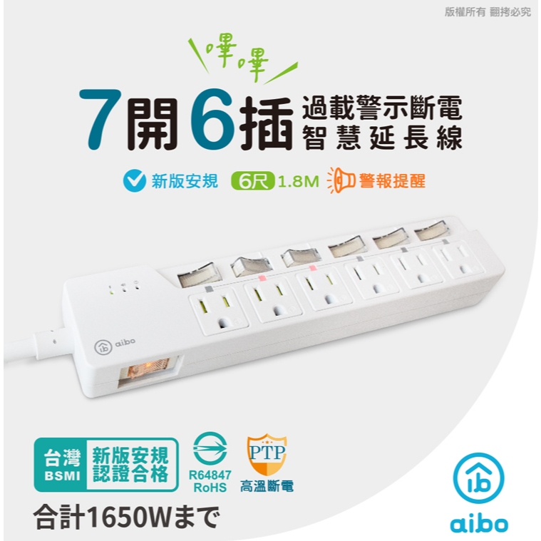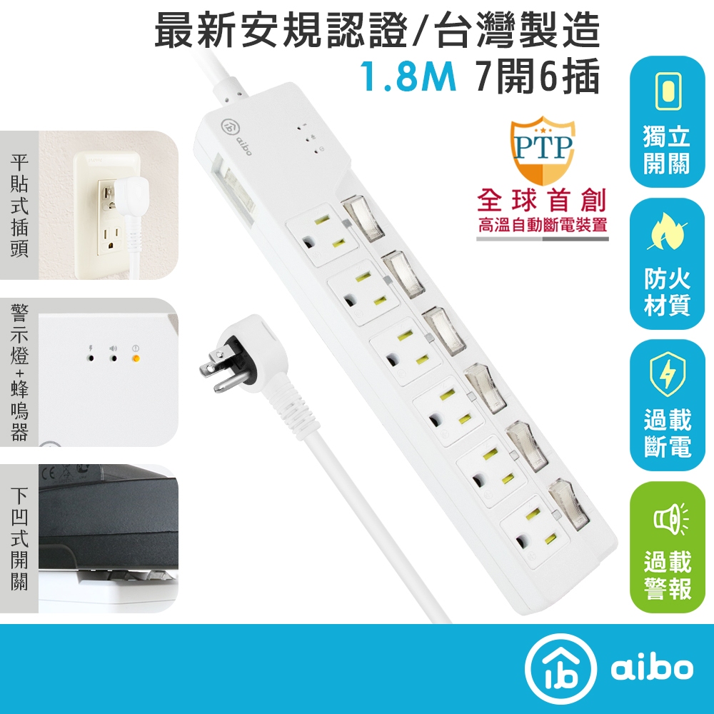 aibo 過載警報 7開6插3P延長線-1.8米【現貨】扁插 蜂鳴器 過載警示斷電 獨立開關 安全防火 智能延長線aibo 過載警報 7開6插3P延長線-1.8米【現貨】扁插 蜂鳴器 過載警示斷電 獨立開關 安全防火 智能延長線Electric Sockets & Extension Cordsaibo 3C生活館