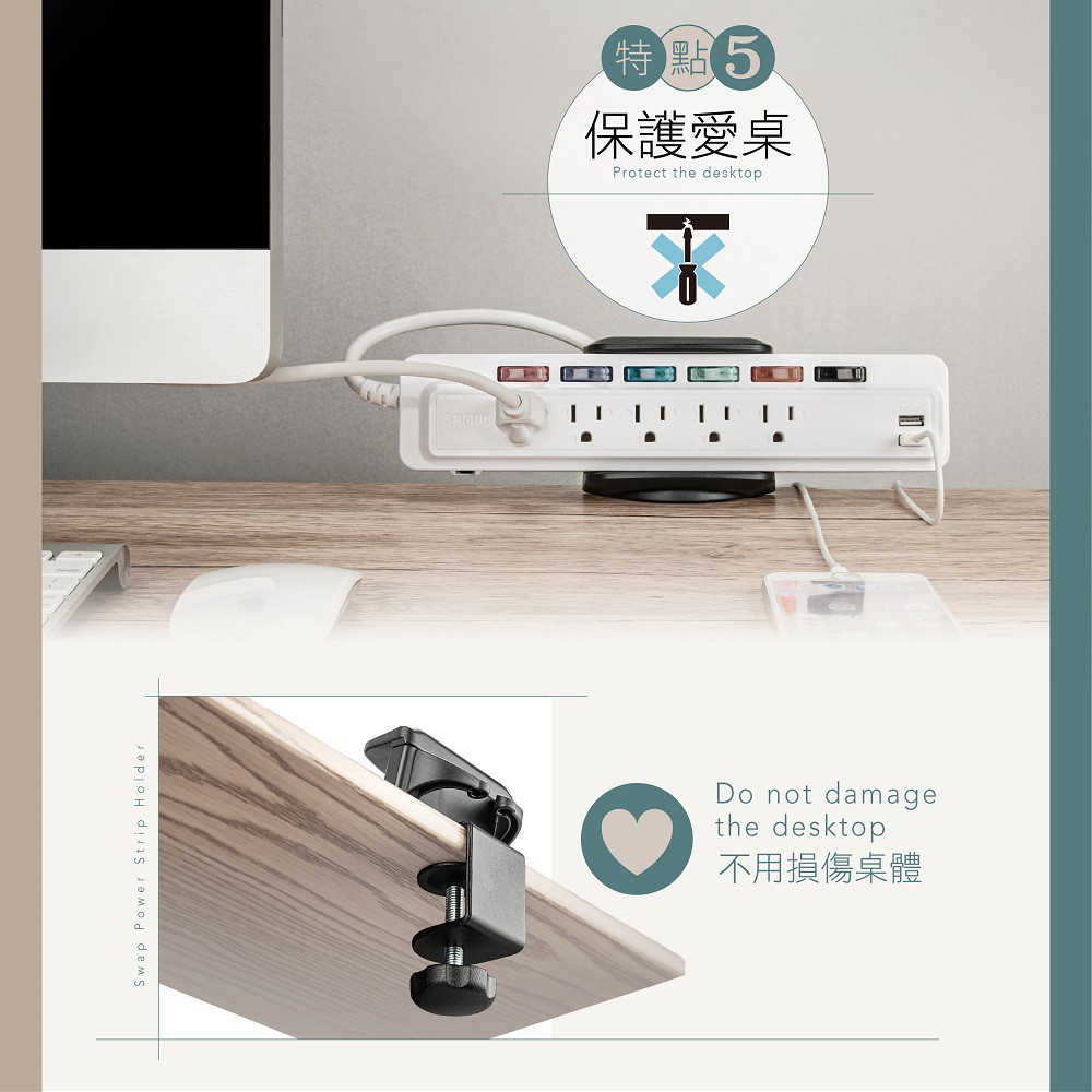 AIDATA 愛得他 夾BAR 桌夾式延長線整理固定器/兩色可選 PH-1010【白色】PH-1010W|【黑色】PH-1010Electric Sockets & Extension CordsAIDATA 愛得他