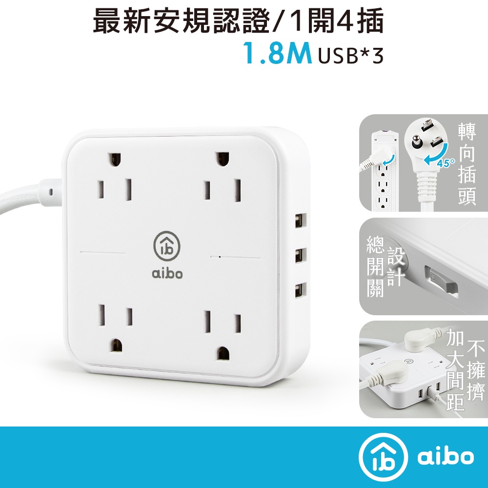 aibo 無印風 3孔4座 USB延長線 1.8米 全新安規 3個USB 加寬插座間距 1開4插 延長線 【現貨】aibo 無印風 3孔4座 USB延長線 1.8米 全新安規 3個USB 加寬插座間距 1開4插 延長線 【現貨】Electric Sockets & Extension Cordsaibo 3C生活館