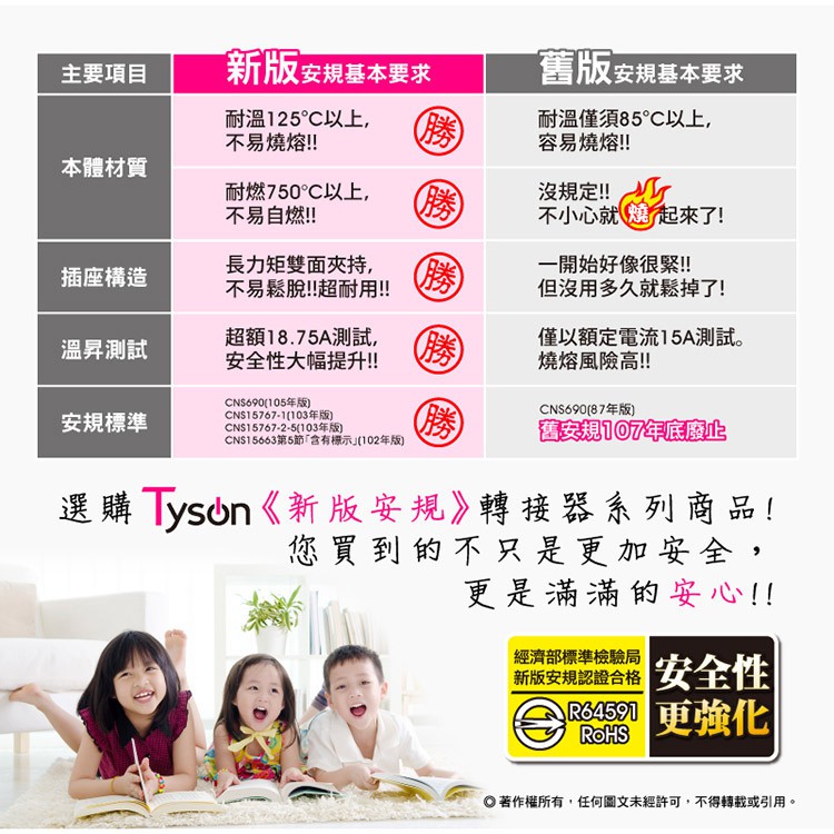 Tyson太順電業 台灣製 D型4座 2孔分接式插座 【現貨】安全防火 高耐熱 阻燃 耐用 耐摔一入Electric Sockets & Extension Cordsaibo 3C生活館