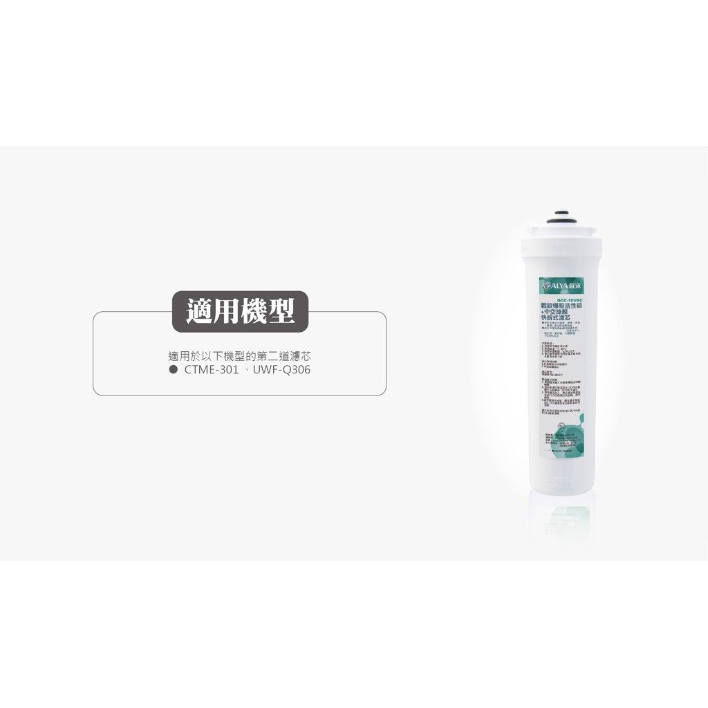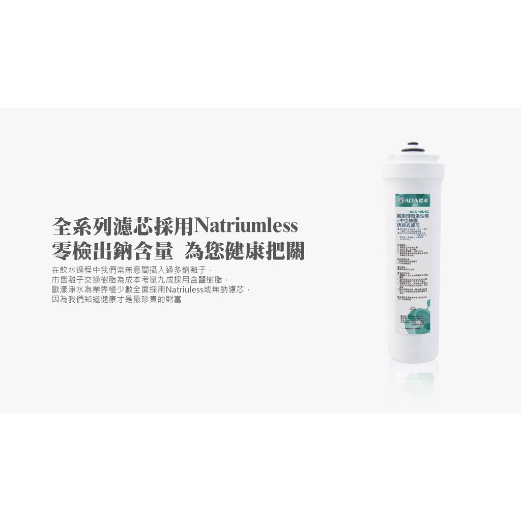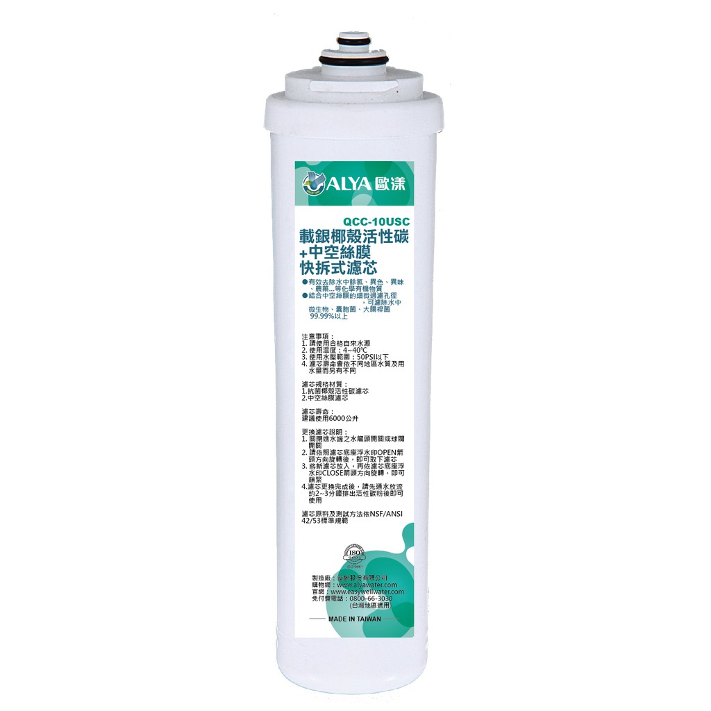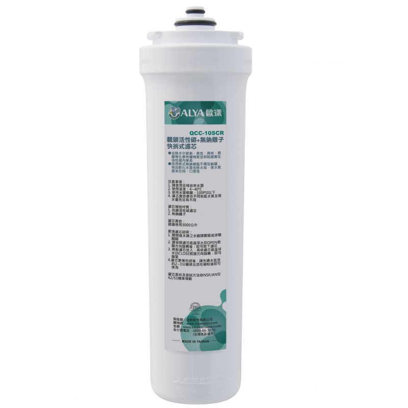 ALYA歐漾 QCC快拆式載銀活性碳 無鈉離子樹脂濾芯 除氯 除水垢 抑菌 全新公司貨 台灣製造(QCC-10SCR)
