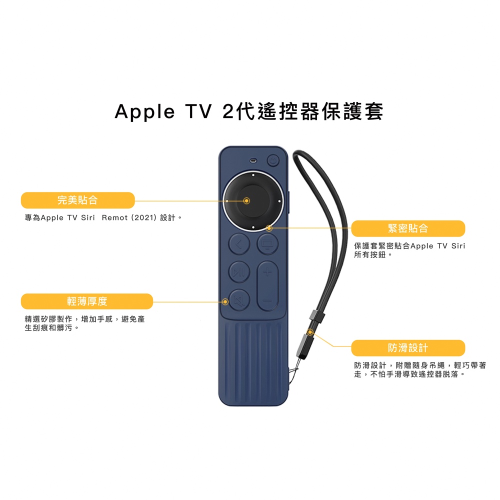 AHAStyle Apple TV遙控器2/3代 防刮防摔 矽膠保護套 條紋防滑款 Siri Remote黑色|粉色|午夜藍色AHAStyle 官方旗艦店