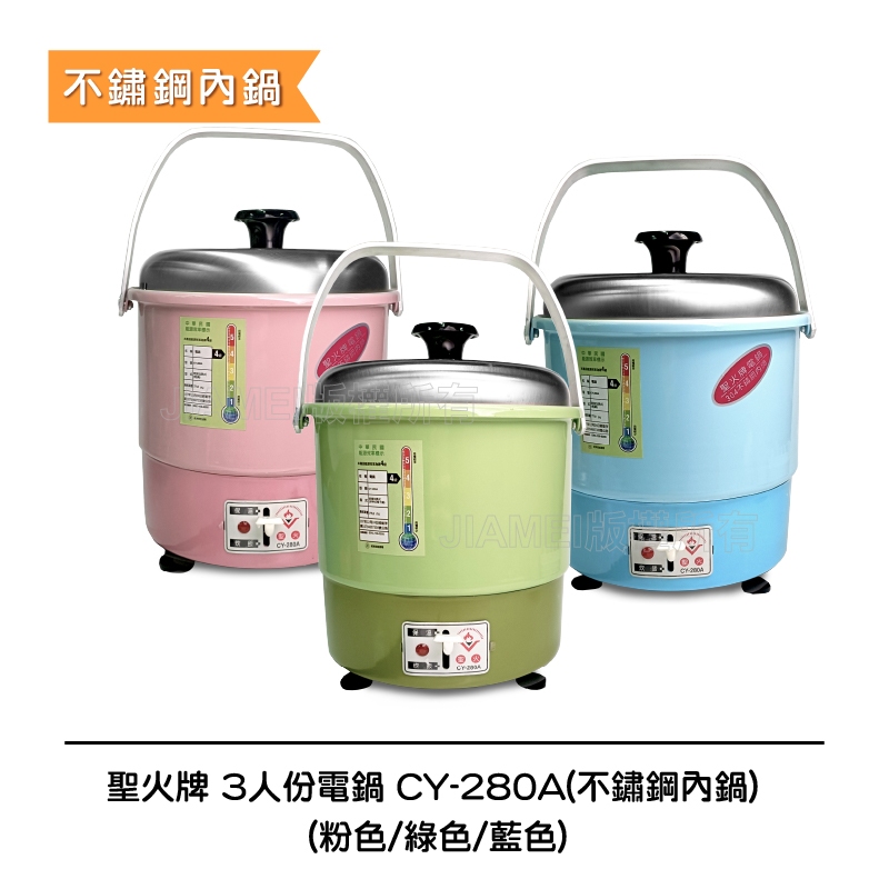 【聖火牌】 3人份電鍋 ■不鏽鋼內鍋■ CY-280 CY-280A 煮飯 燉湯 清蒸皆宜 學生 套房族的最愛綠色|粉紫色|藍色|單購不鏽鋼內鍋Rice CookersAll Sale電器共和國