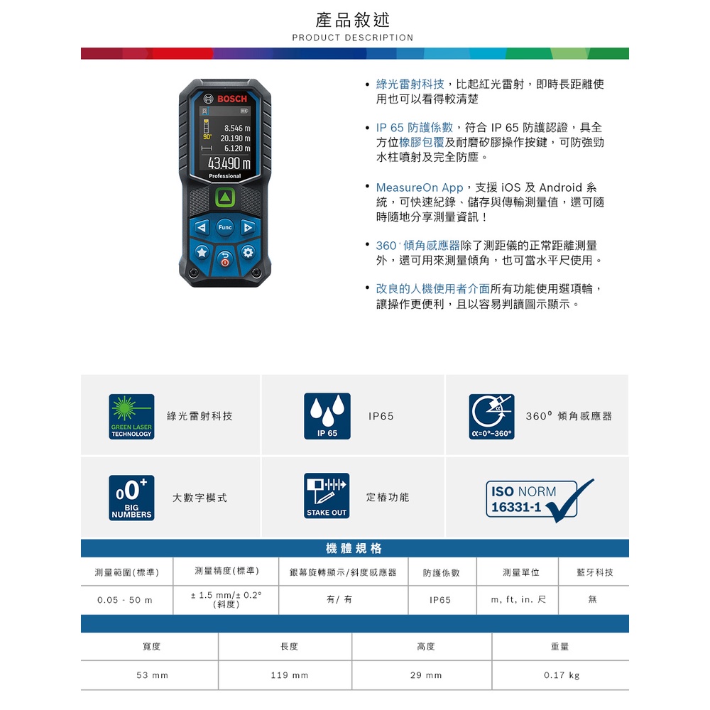 BOSCH 博世 50米綠光雷射測距儀 GLM 50-23 GBOSCH 博世 50米綠光雷射測距儀 GLM 50-23 GToolsBOSCH 博世官方授權專賣店