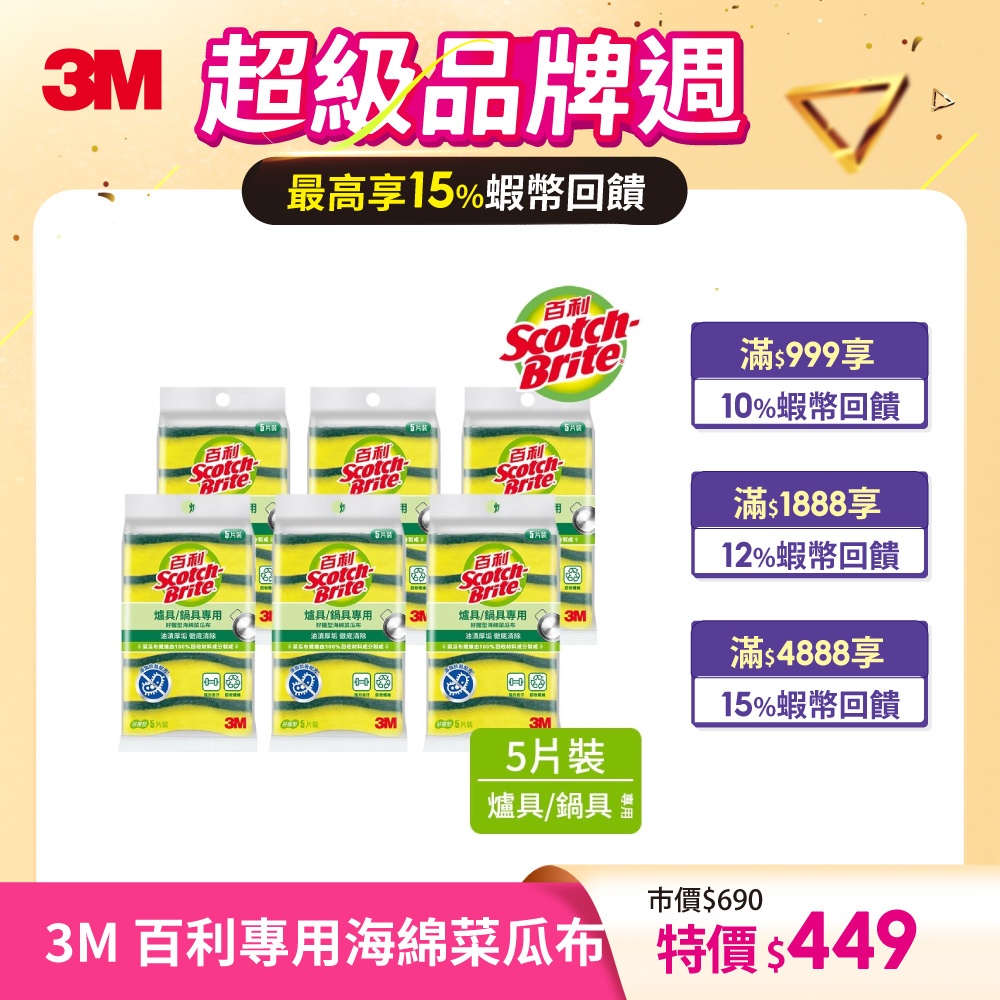 3M 百利 專用海綿菜瓜布 6包賣場(細緻餐具/爐具鍋具-兩款可選)細緻餐具茶杯專用(5片*6包)|爐具鍋具專用 30片(5片*6包)Sponges & Scouring Pads3M 授權官方旗艦館
