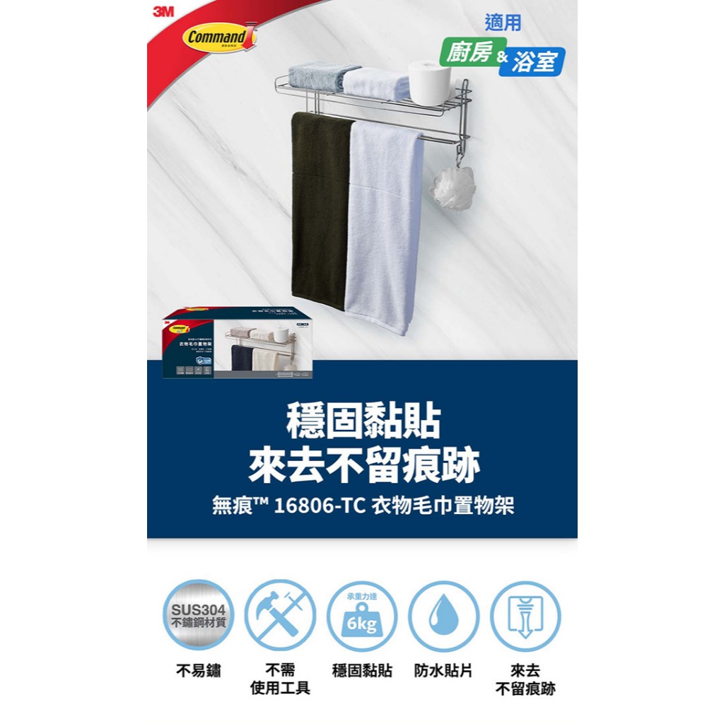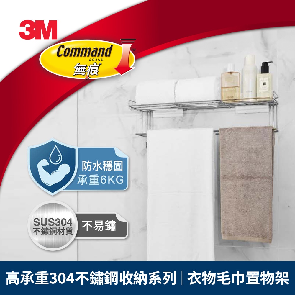 3M 16806-TC 無痕高承重304不鏽鋼收納系列 衣物毛巾置物架