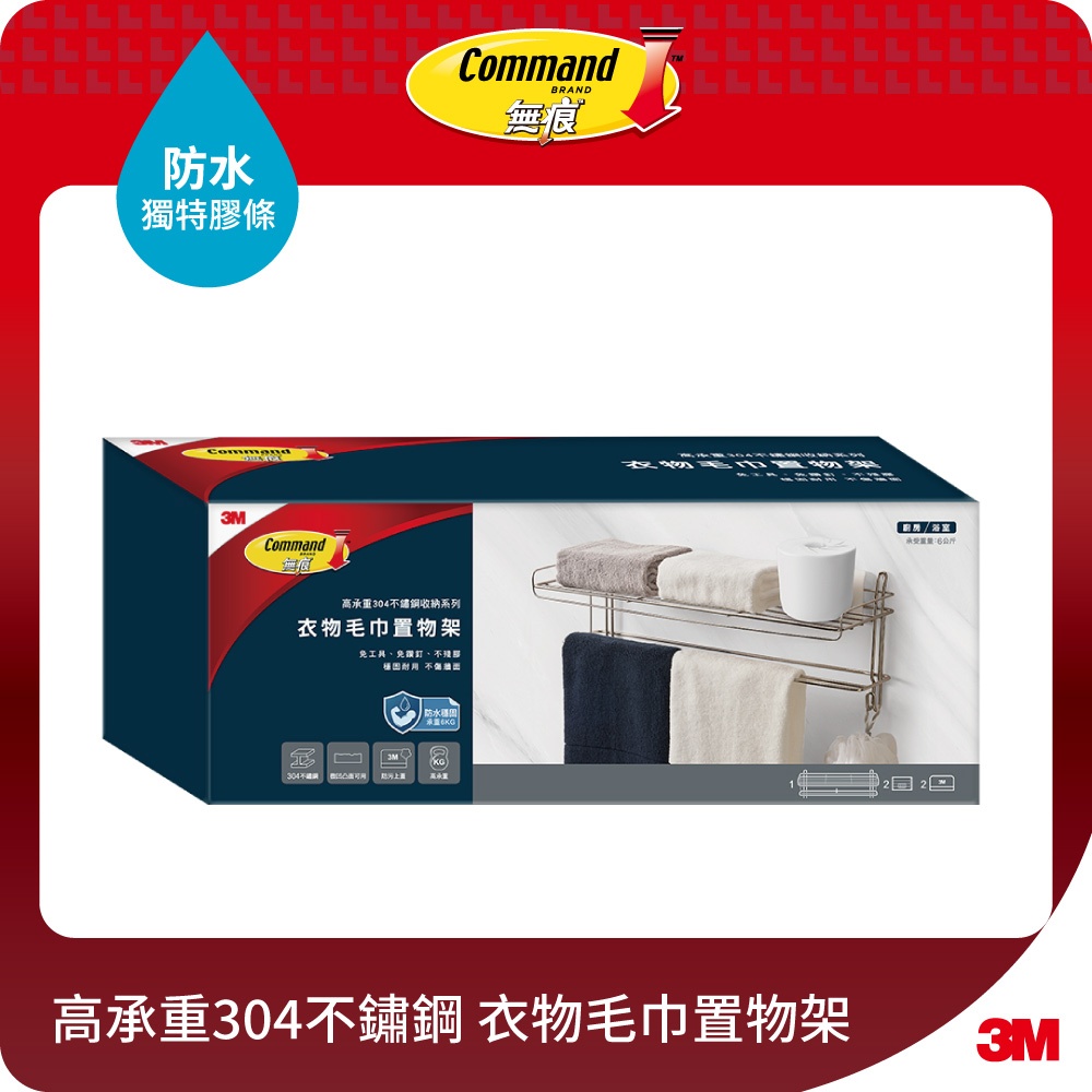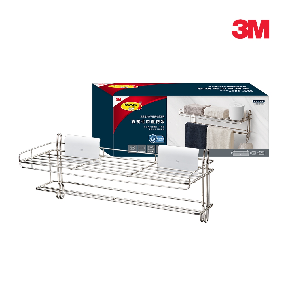 3M 16806-TC 無痕高承重304不鏽鋼收納系列 衣物毛巾置物架1組Hooks3M 授權官方旗艦館