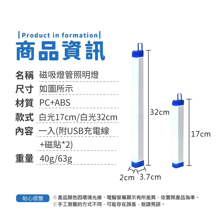 磁吸燈管照明燈 露營燈 磁吸燈 應急燈管【小麥購物】24H出貨 LED燈 行動燈管 書桌燈 床頭燈 充電式 【C370】白光|17cm|白光|32cm 小麥購物