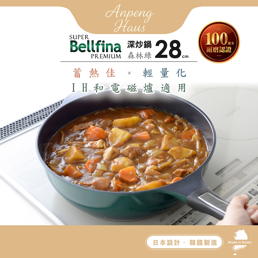 日本Arnest Bellfina鑽石深型平底IH不沾炒鍋28cm-森林綠(瓦斯爐、電磁爐均可用)單鍋組|含不鏽鋼玻璃鍋蓋PansAnpeng Haus