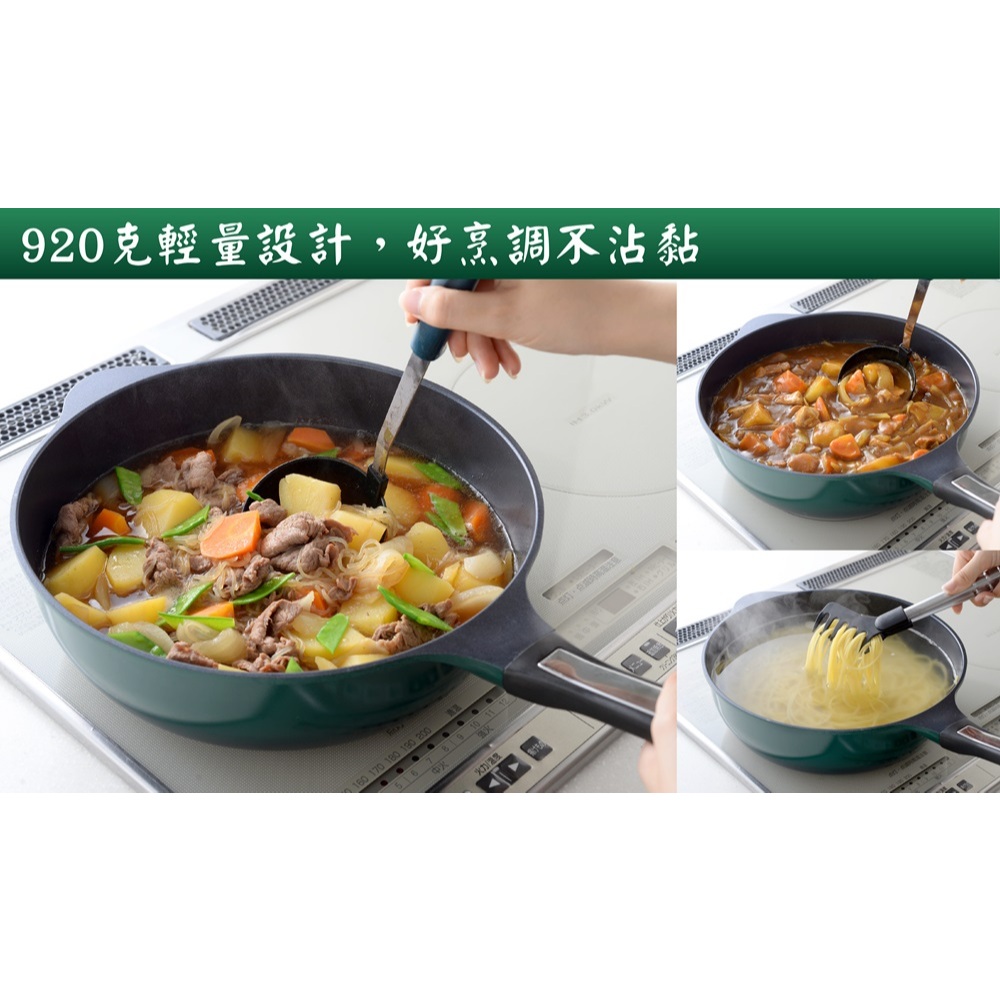 日本Arnest Bellfina鑽石深型平底IH不沾炒鍋28cm-森林綠(瓦斯爐、電磁爐均可用)