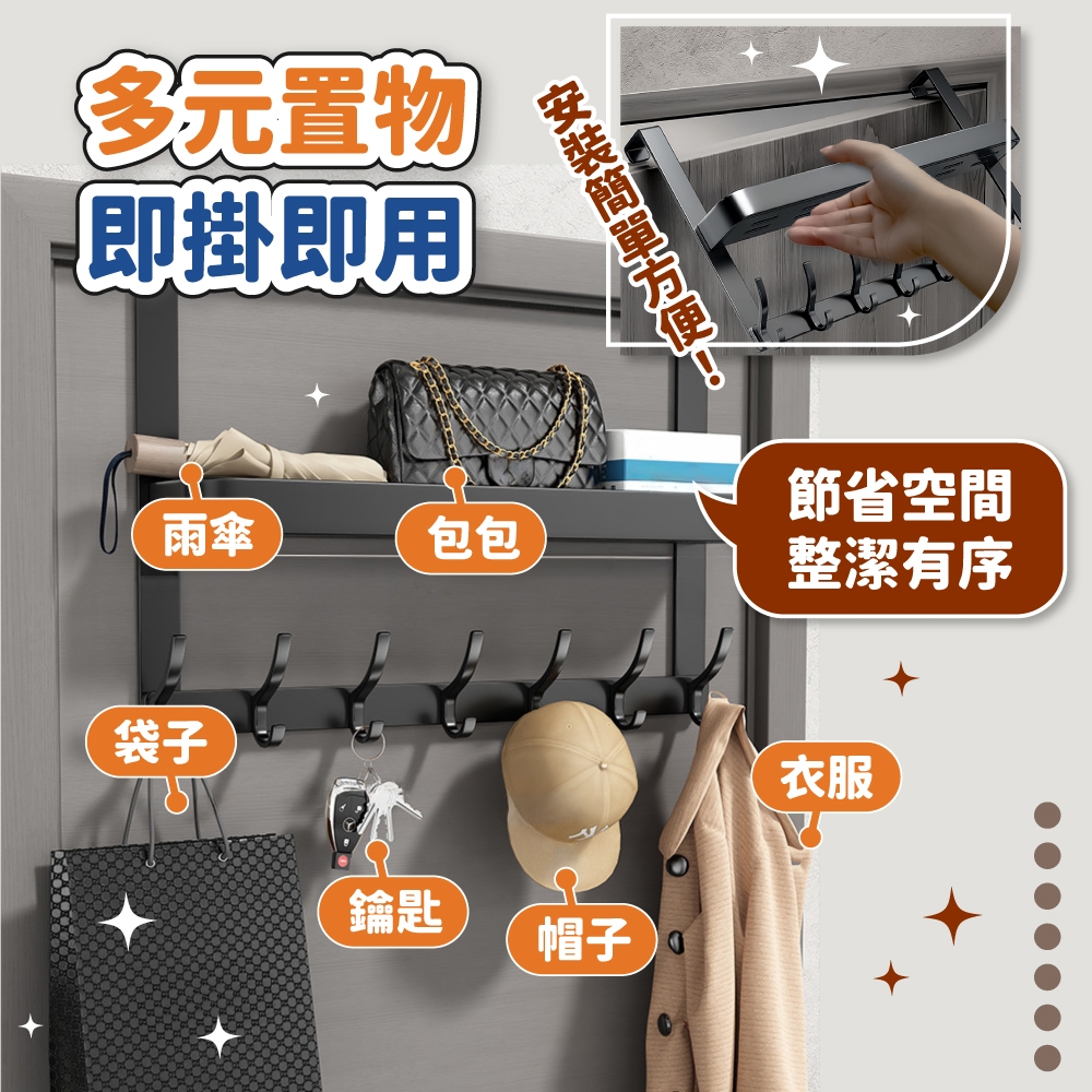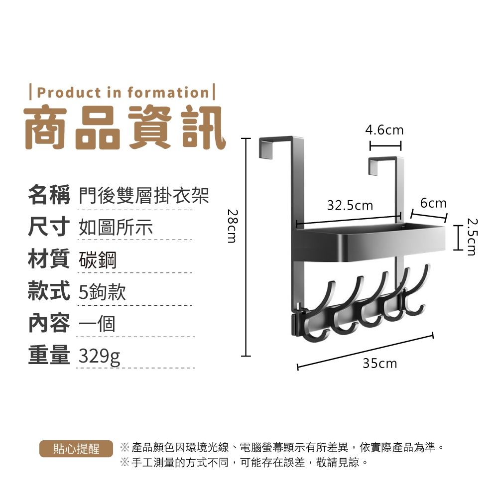 門後雙層掛衣架 掛鈎置物架 免打孔掛鉤 雙層收納架 門後掛鉤 門後置物架 收納架 置物架【小麥購物】【C583】5鉤款|7鉤款Hooks 小麥購物