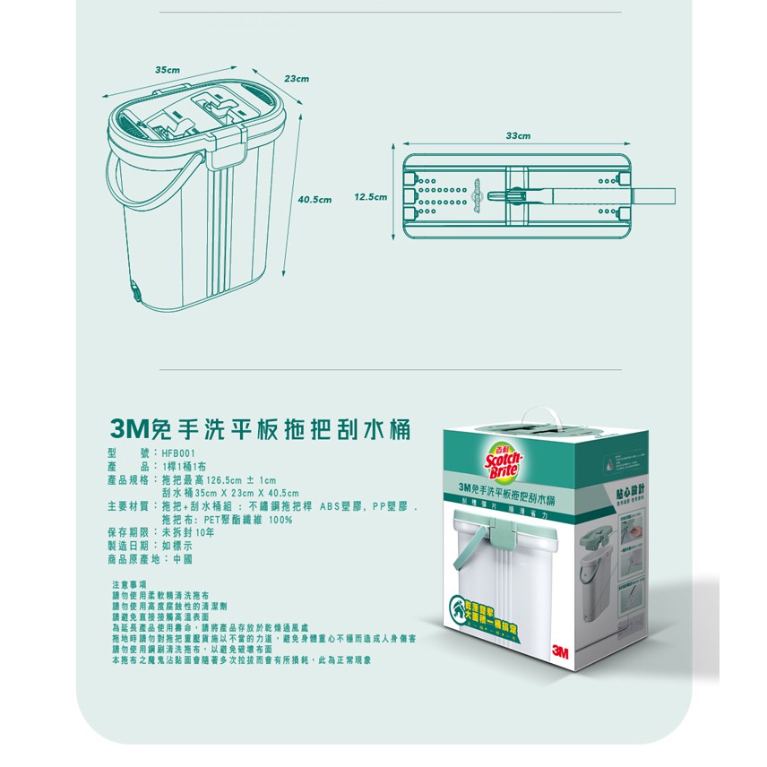 3M 百利 免手洗平板拖把/替換桿 HFB-1H1P拖把/替換桿|拖把/替換桿+補充包Mops3M 授權官方旗艦館
