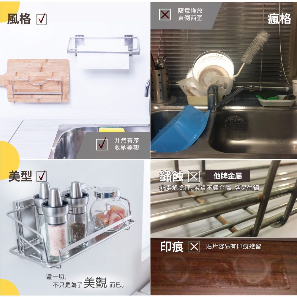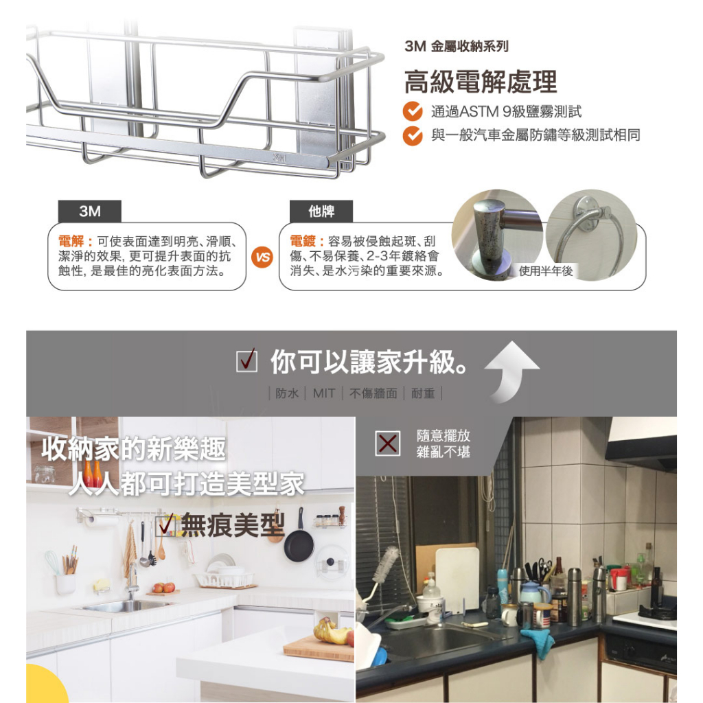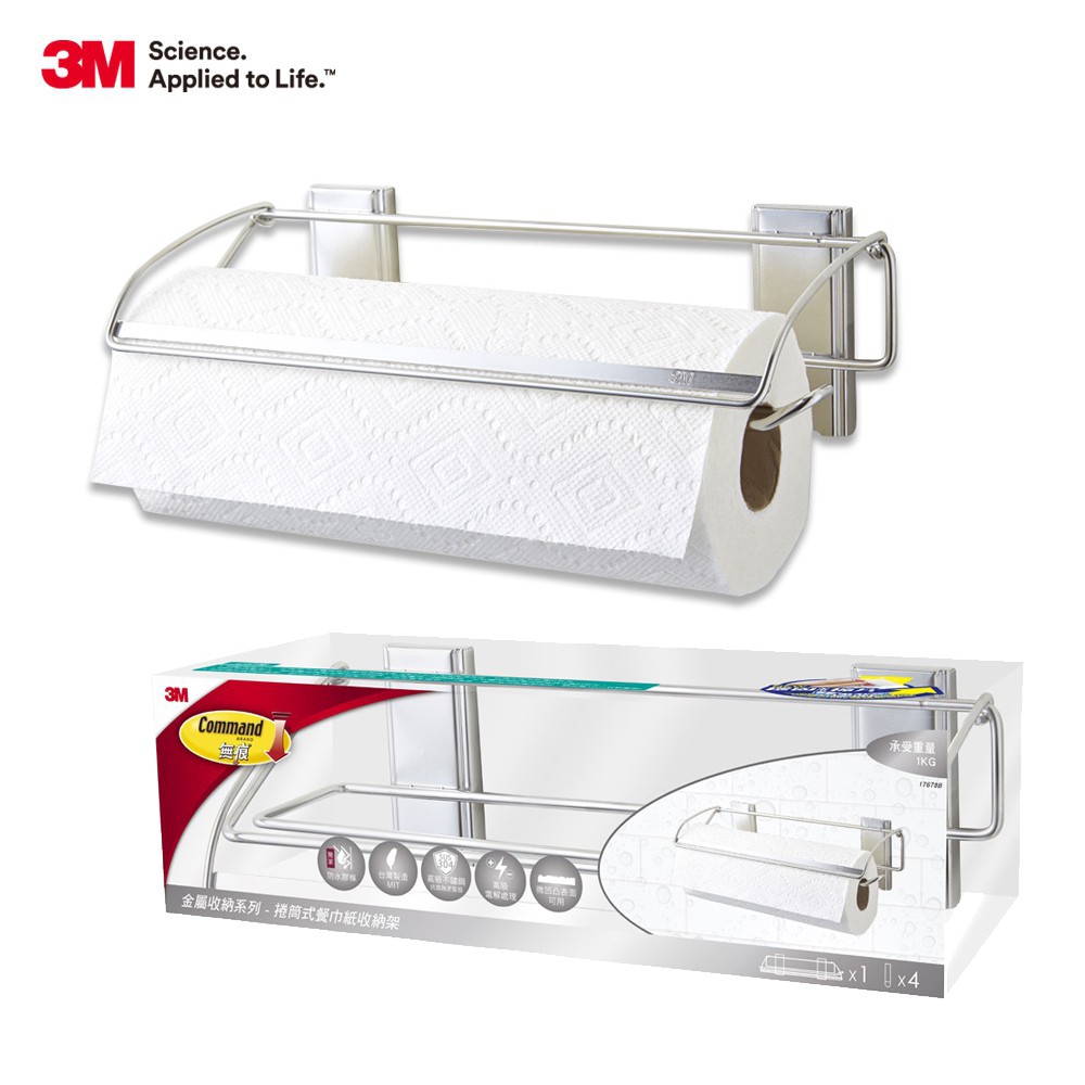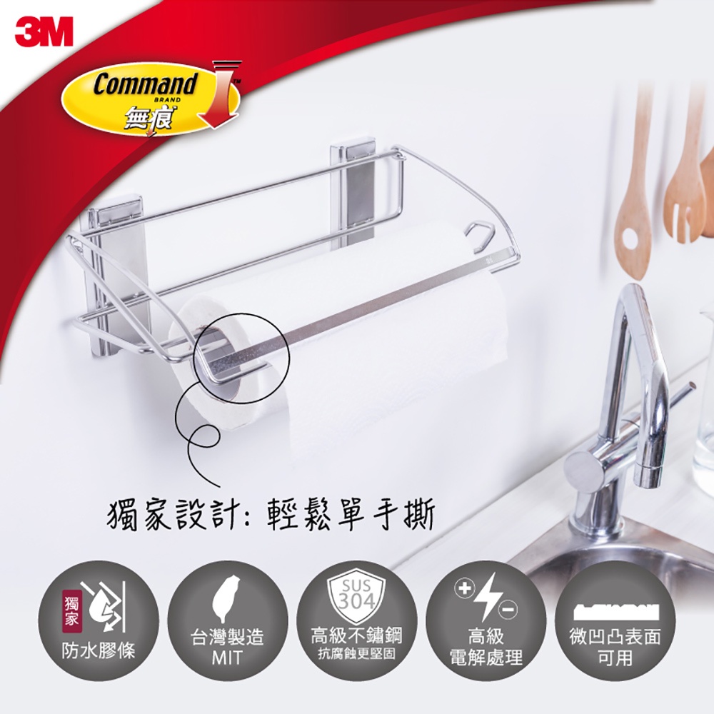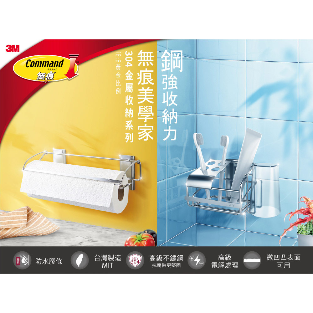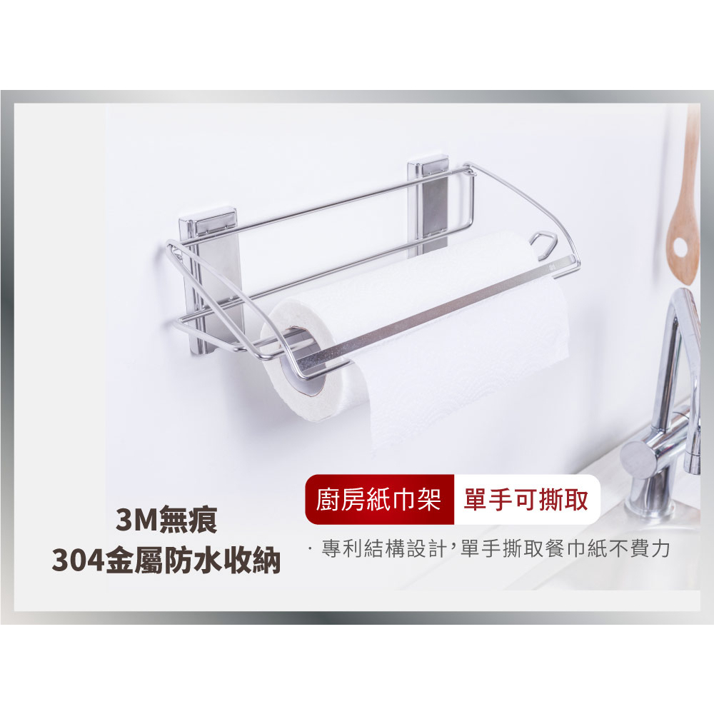 3M 無痕 304金屬防水收納-廚房免鑽 餐巾紙收納架
