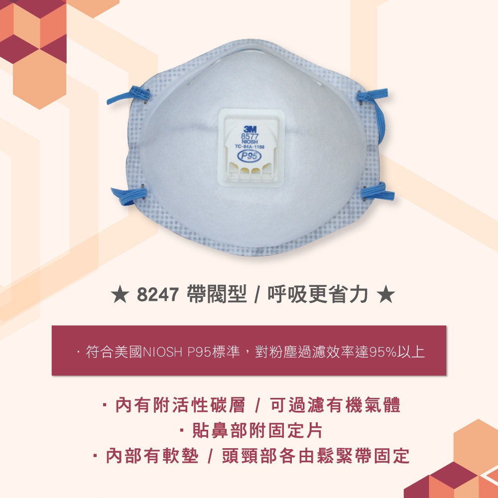 3M 帶閥型 活性碳口罩 P95等級 防塵口罩 8577 防護口罩 工業防塵口罩 拋棄式口罩 10個x1盒1盒(10個)Protective Gloves, Goggles & MasksBlue Eagle 藍鷹牌專業口罩台灣總代理醫碩科技